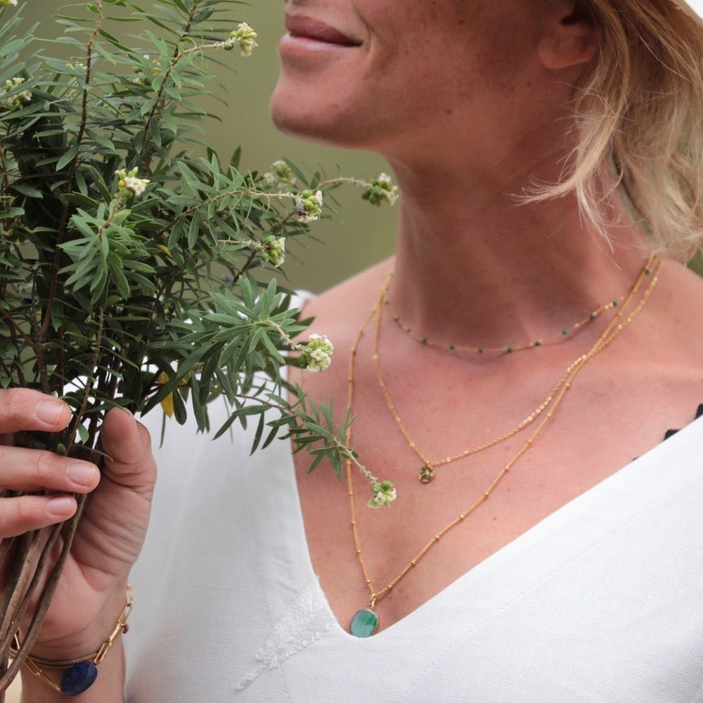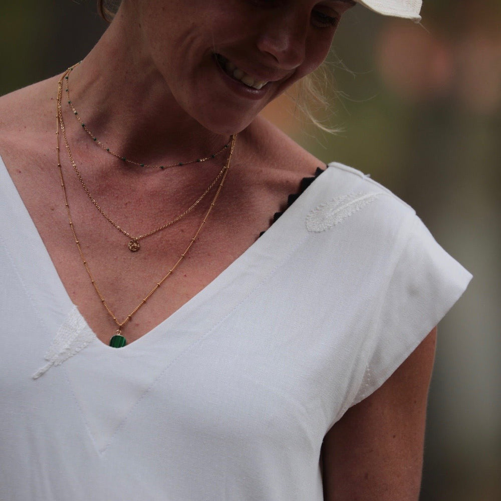Collier 2 rangs mi-long Aélis - vert émeraude