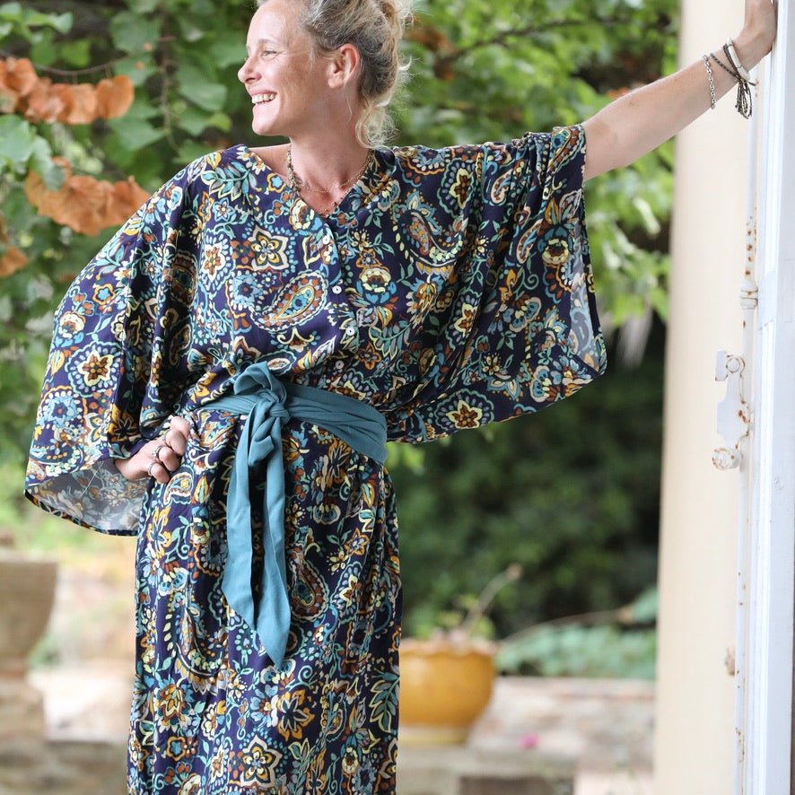 Ceinture Anita - Double gaze de coton rayée kaki/marine