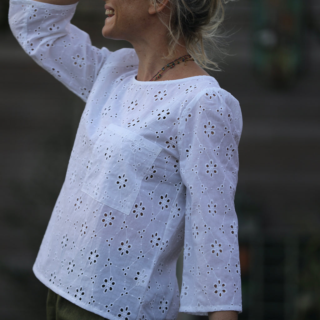 Blouse Toscane - voile brodé fleuri ajouré - 30 %