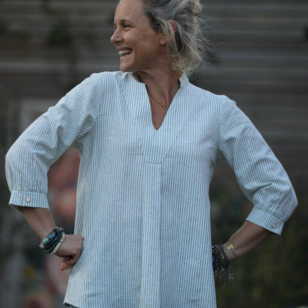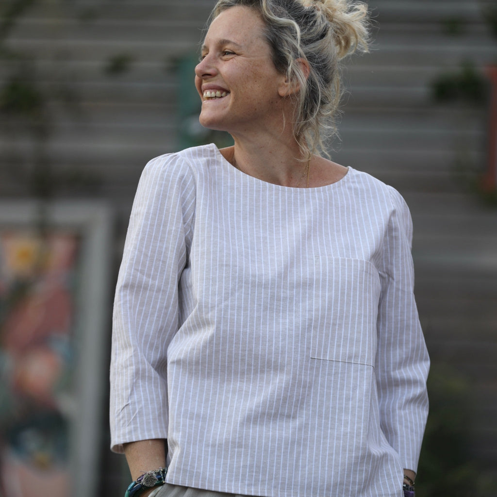 Blouse Toscane - lin/coton rayé ficelle - 30 %