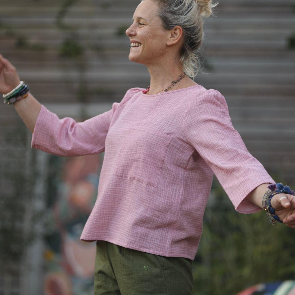 Blouse Toscane - double gaze de coton rose boisé chiné - 30 %