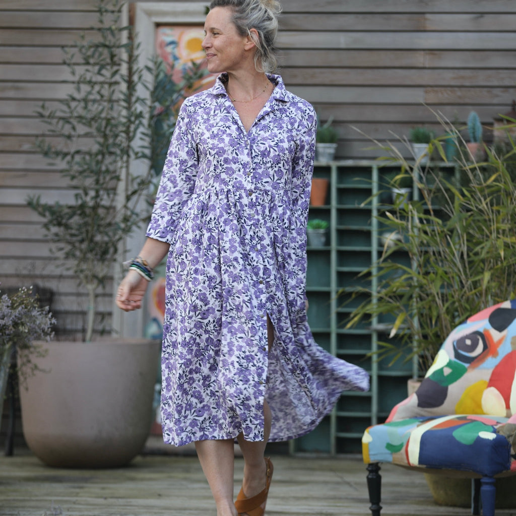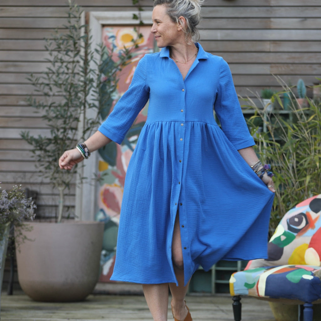 Robe Julia manches 3/4 double gaze de coton bleu majorelle - 30 %