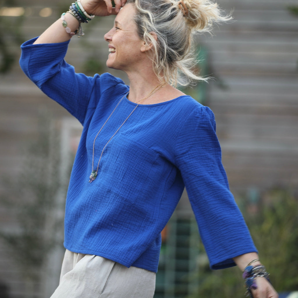 Blouse Isabeau - double gaze de coton bleu majorelle