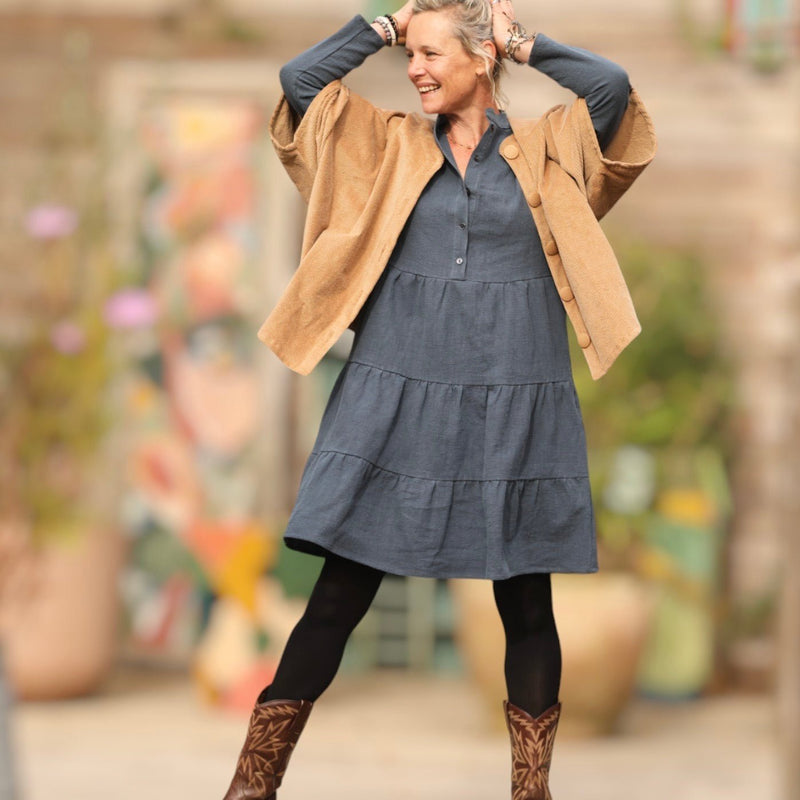 Robe Bella - lin stone wash bleu navy - Quintessence