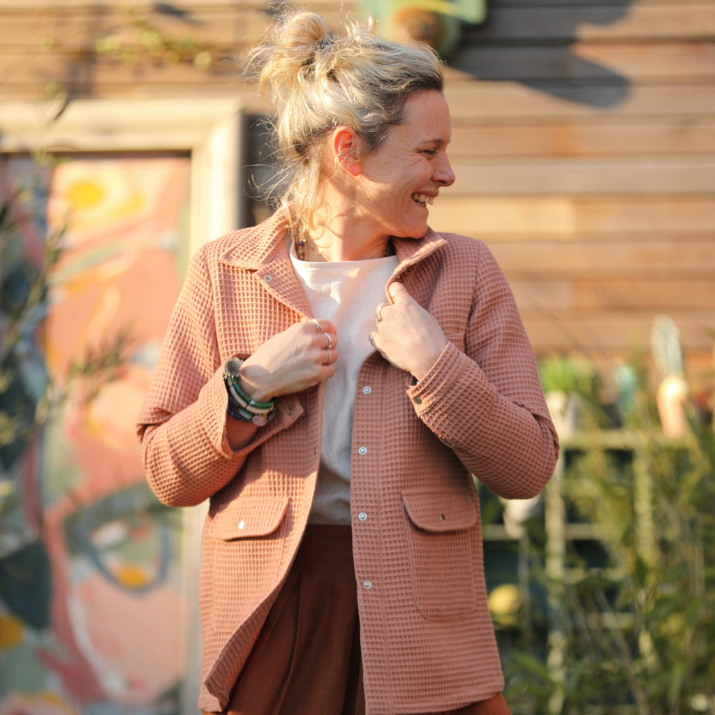 Gilet Basile matelassé en double gaze de coton rose boisé - 30 %