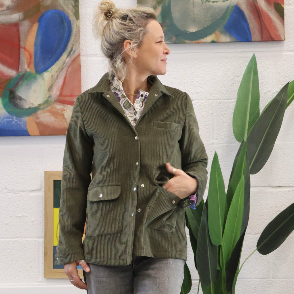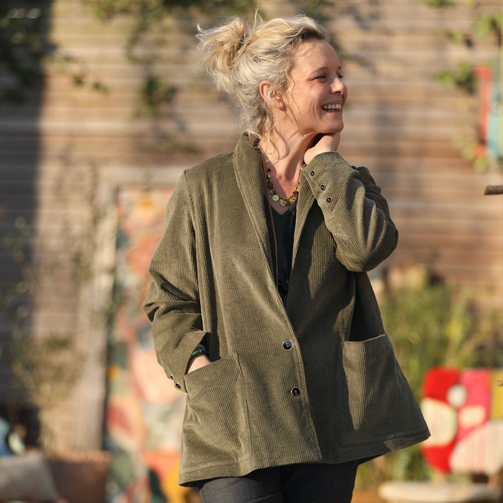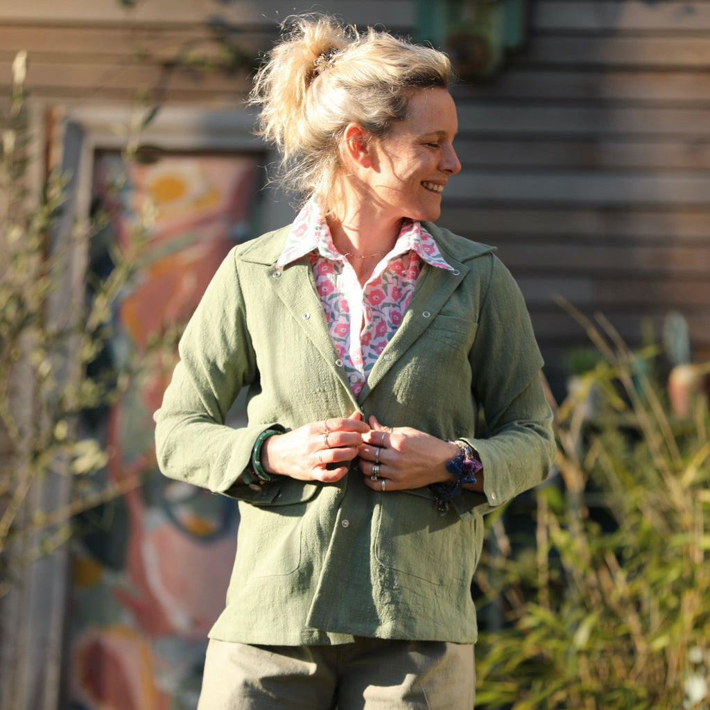 Gilet Basile matelassé en double gaze de coton vert kaki - 30 %