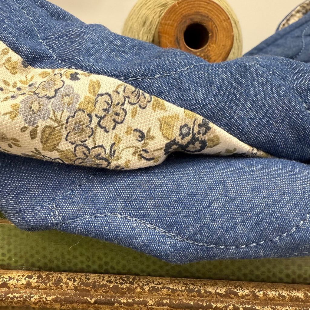 Gilet Basile en double gaze de coton écureuil matelassé/toile de jouy - 30 %