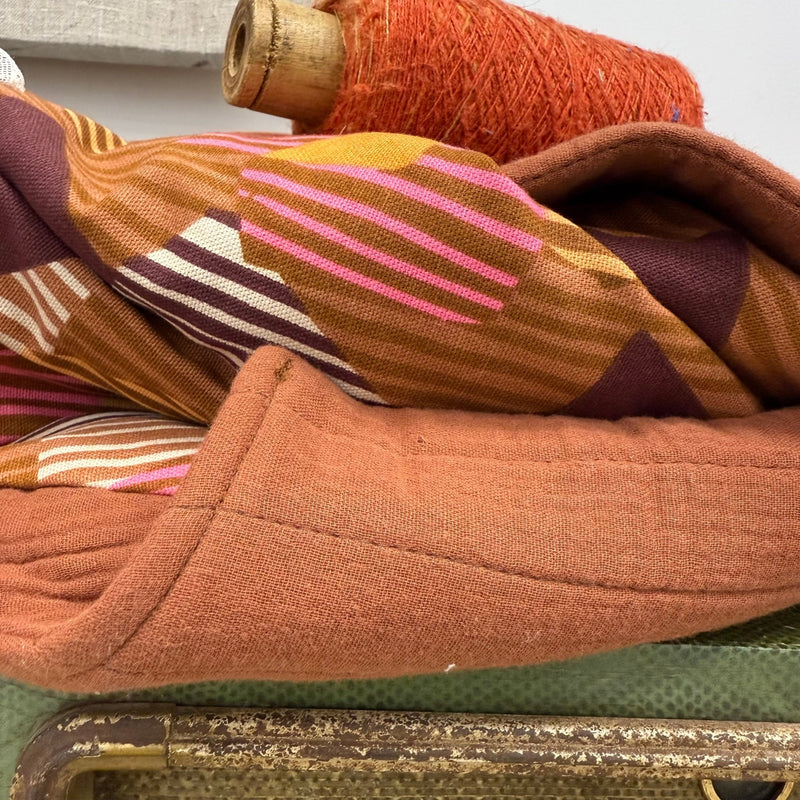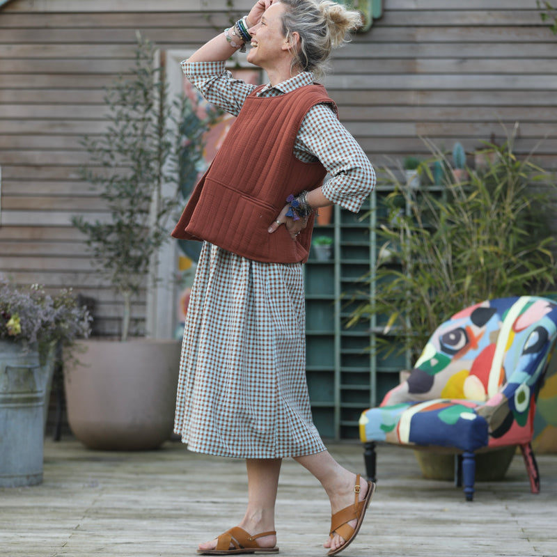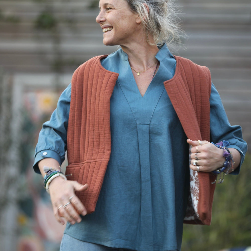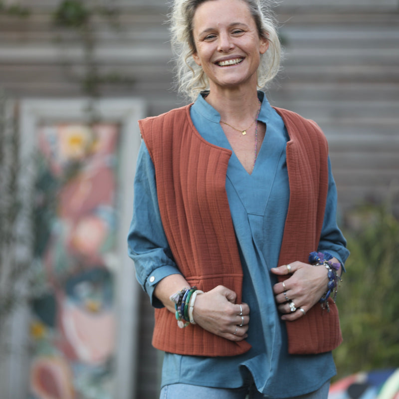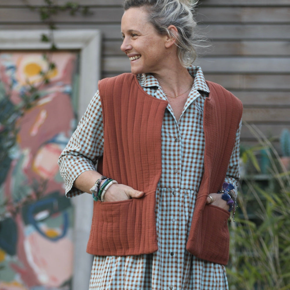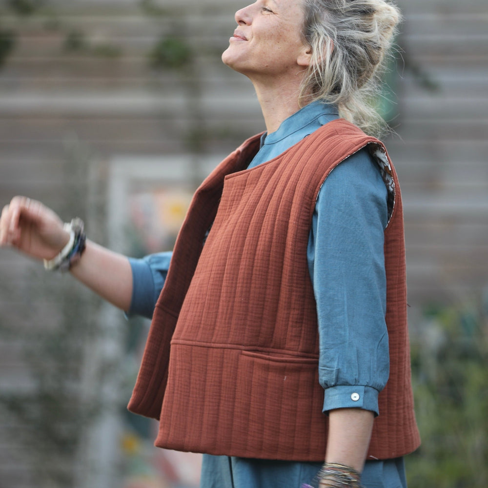 Gilet Basile en double gaze de coton écureuil matelassé/toile arty