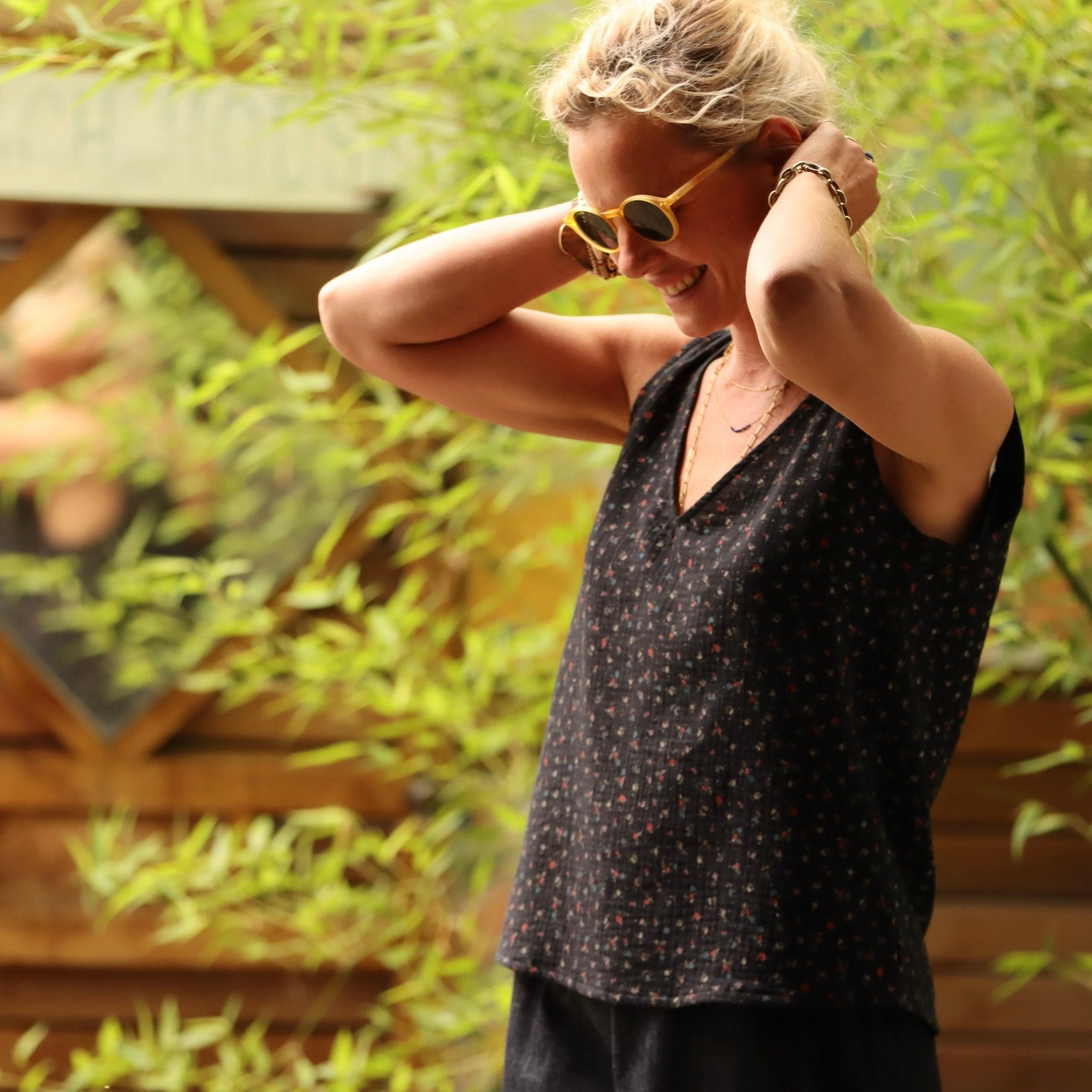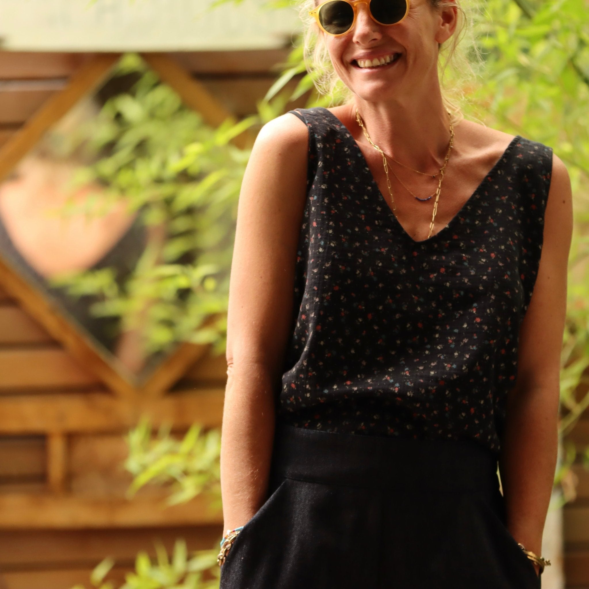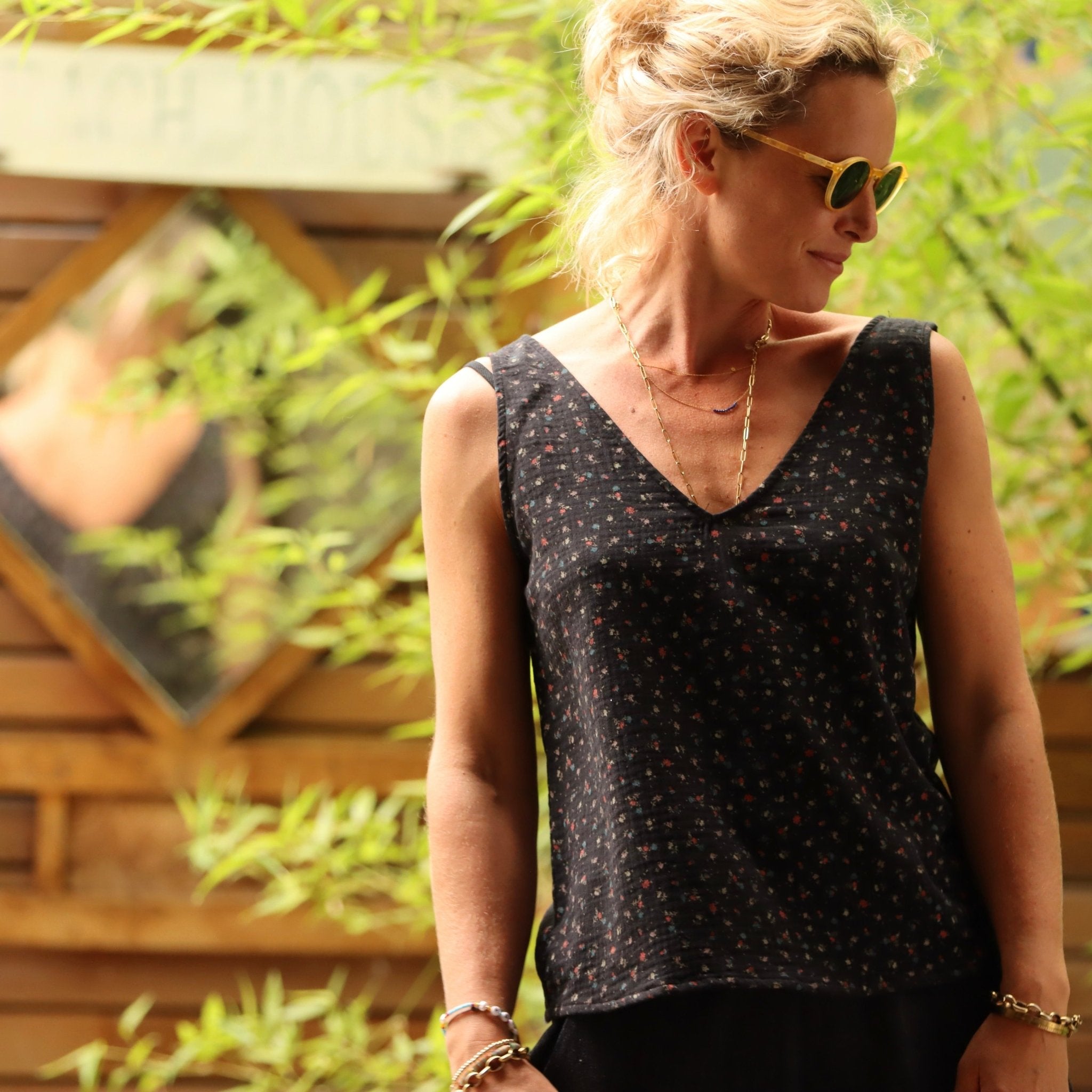 Débardeur Félicie - Double gaze de coton imprimé fleurs du soir