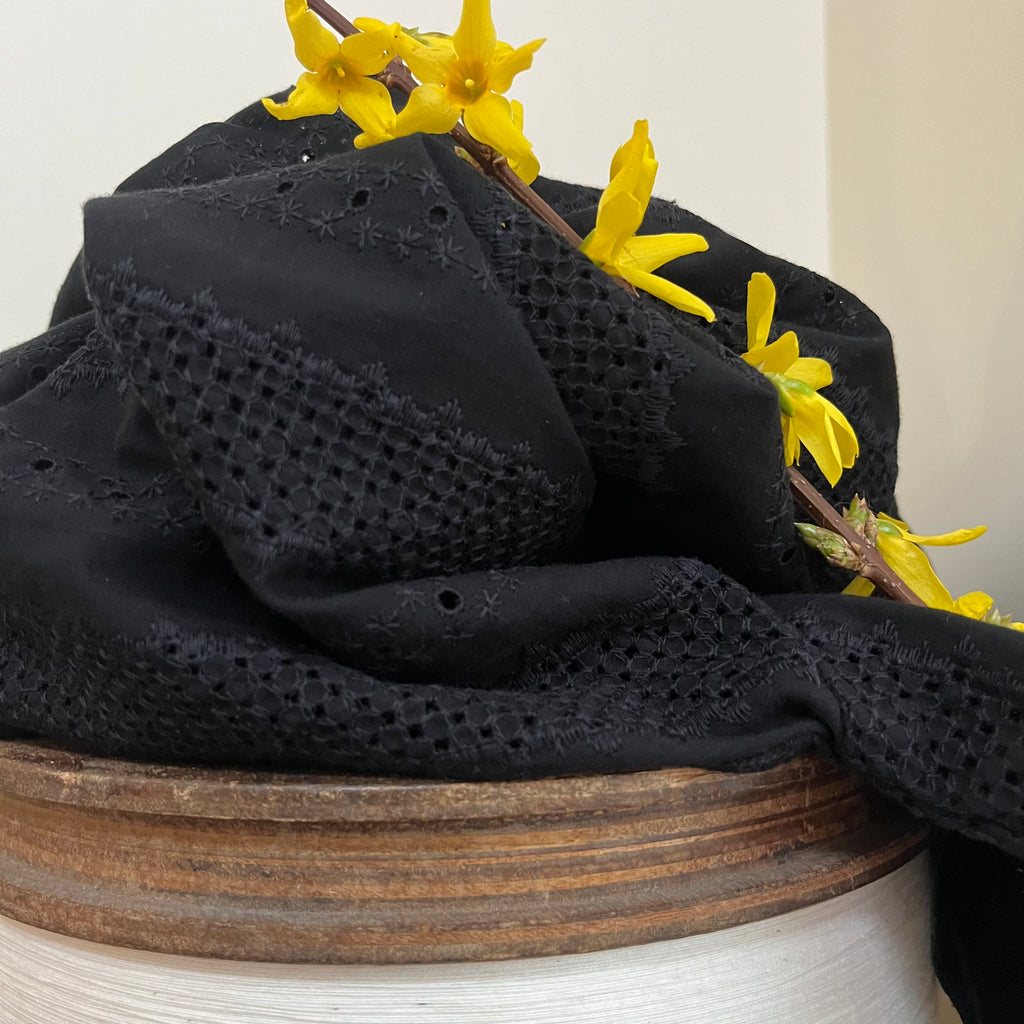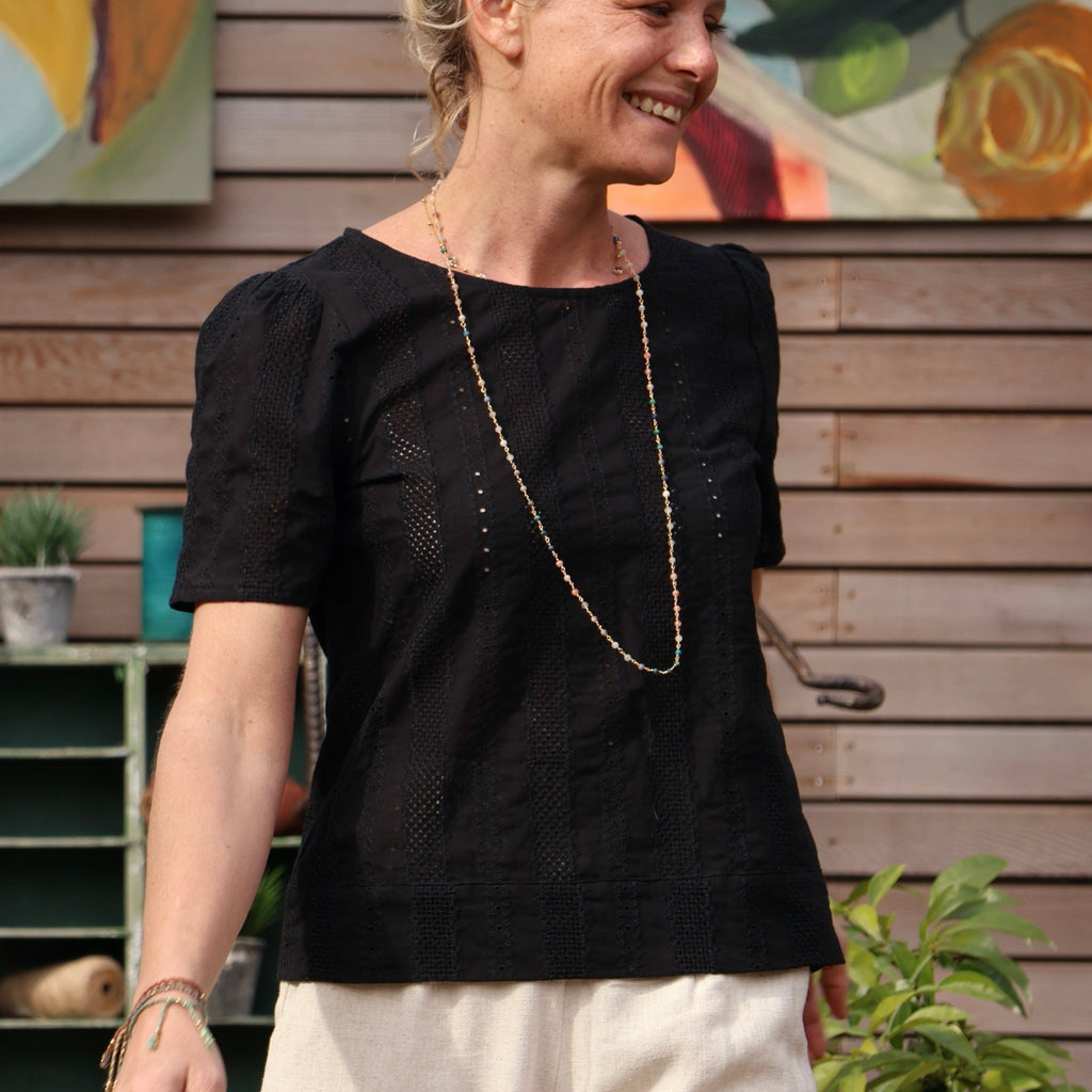 Blouse Eulalie col rond - manches courtes- broderie de coton noire Épuisé