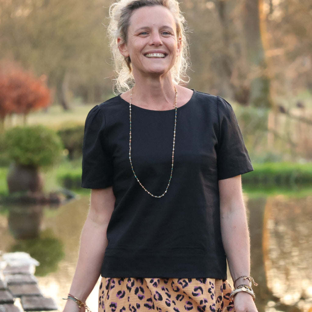 Blouse Eulalie col rond - manches courtes - lin noir - 30 %
