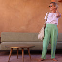 Pantalon Ernest viscose/lin vert frais - 26 %