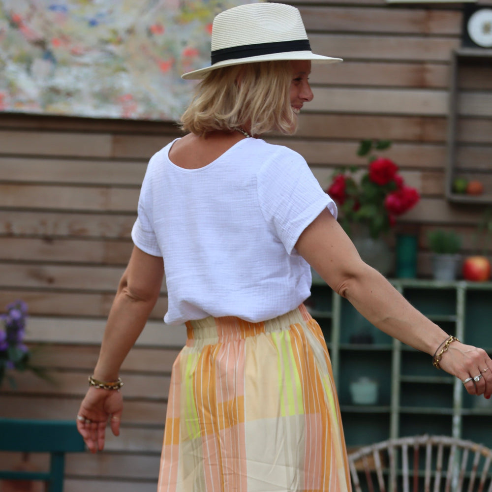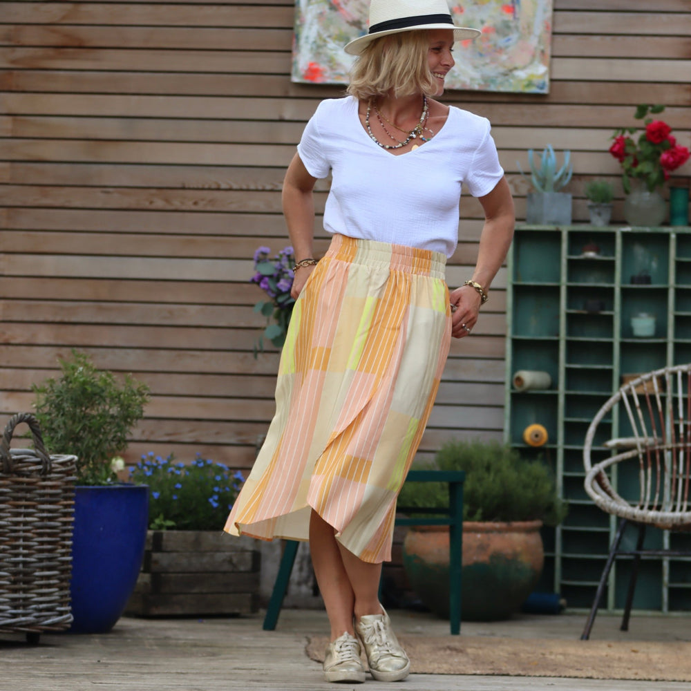 Jupe Tina sergé de coton/viscose géométrique - Quintessence
