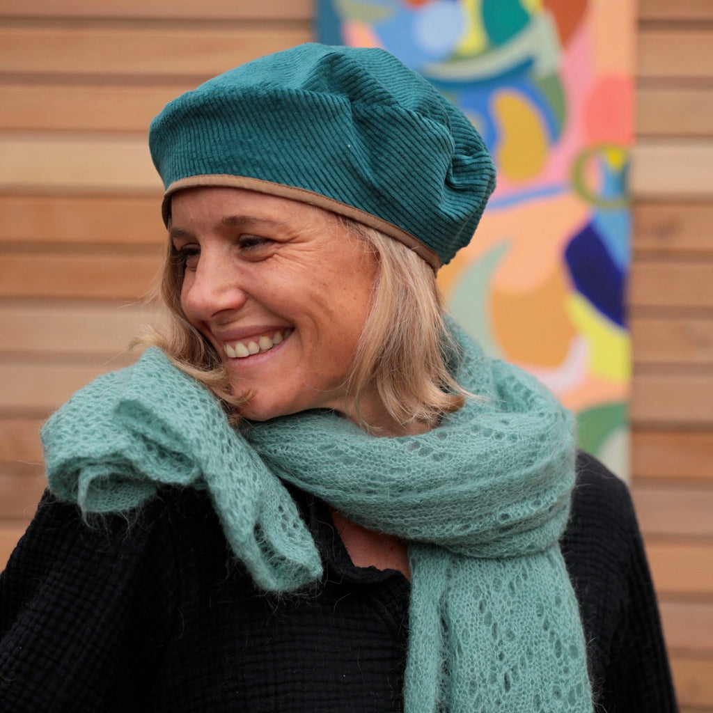 Capuche Rosalie - velours grosse côtes vert d'eau/velours milleraies vert d'eau 40% off