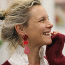 Boucles d’oreilles Camélia – Émaillées Grenat