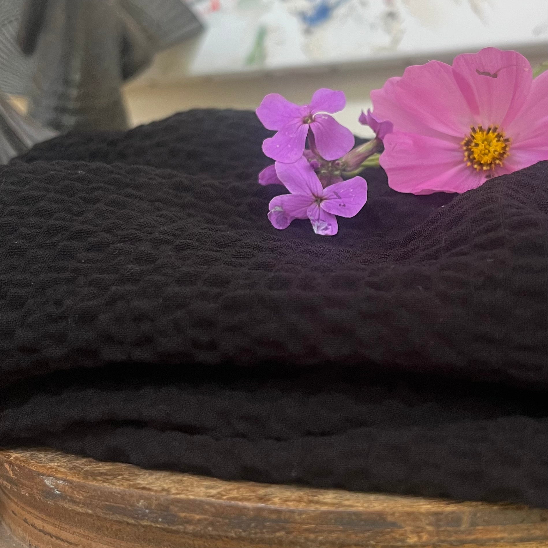Robe Swan - Viscose gaufrée noire - Quintessence