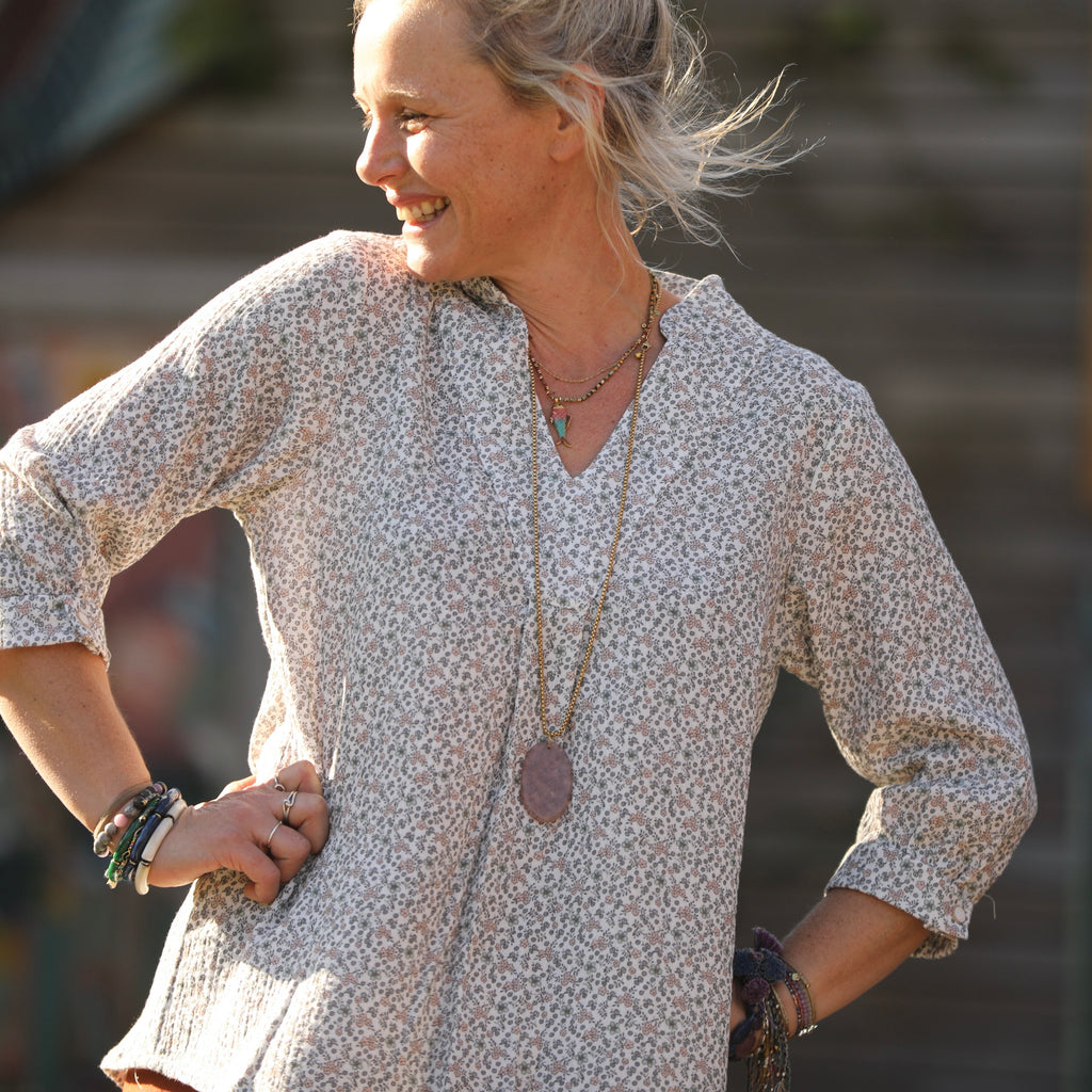 Chemise Caroline - Satin de coton Fleurs de Curcuma
