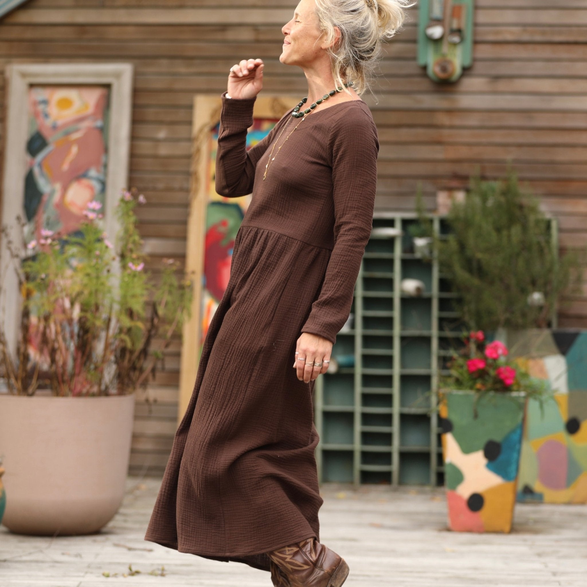 Robe Anaëlle - Double gaze de coton chocolat - Quintessence
