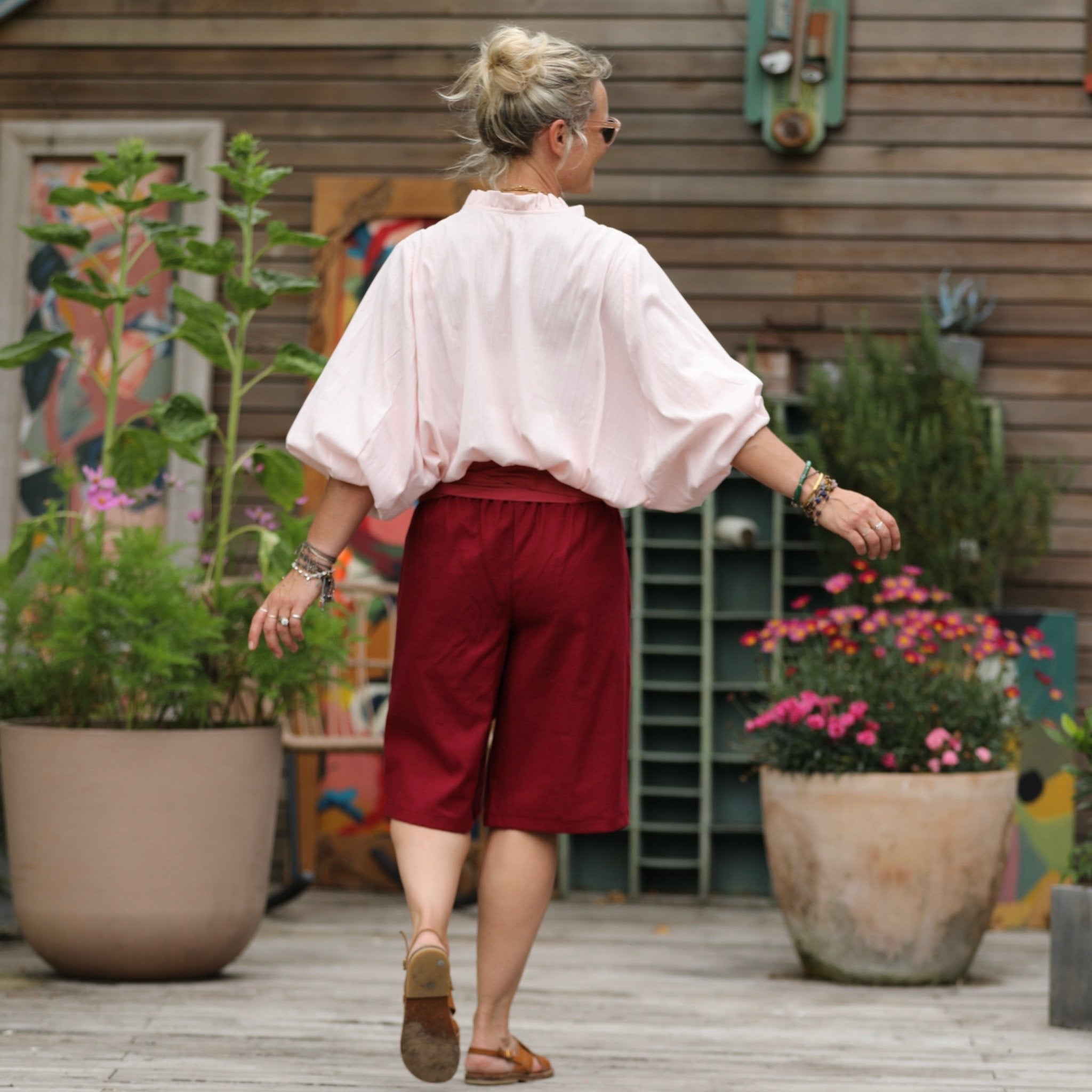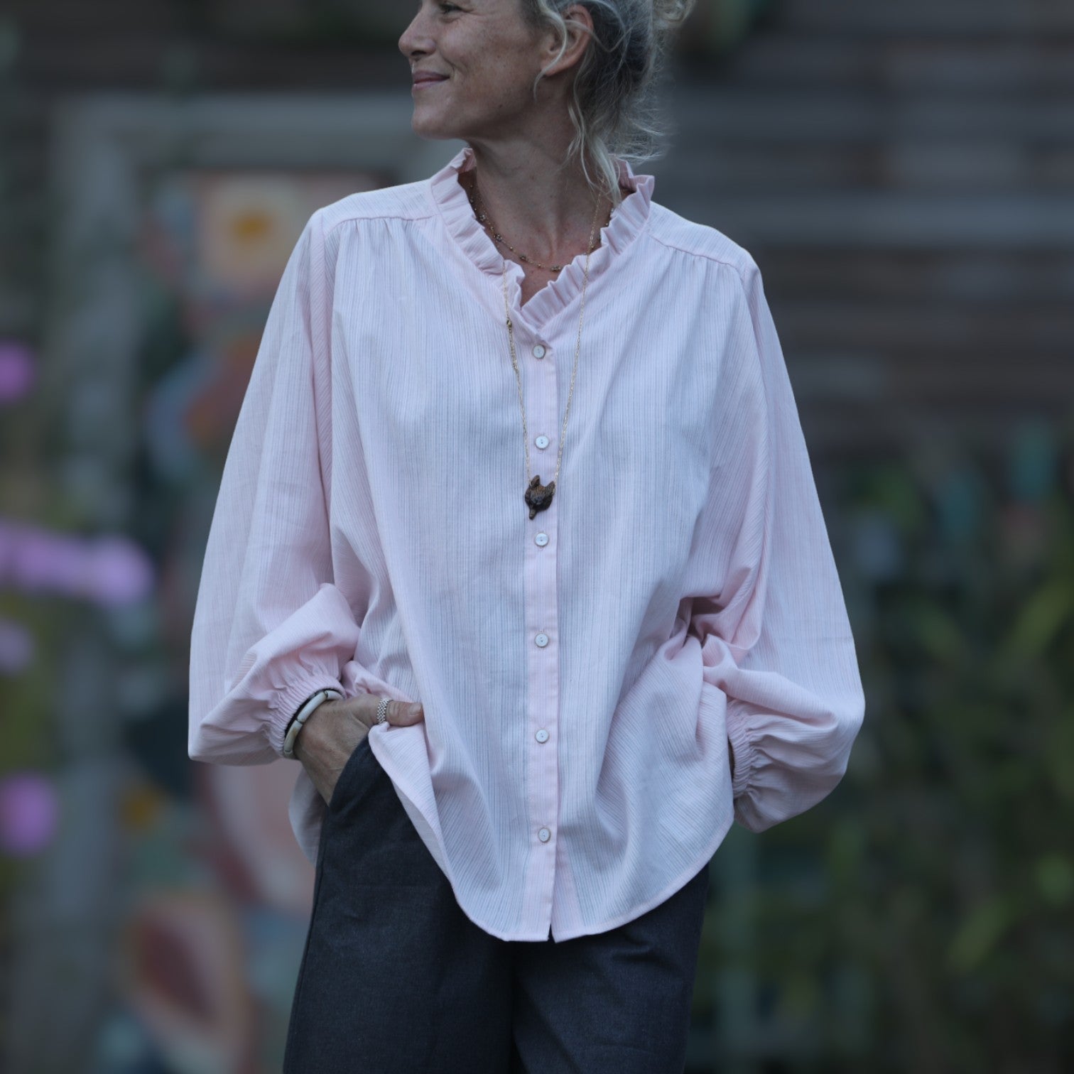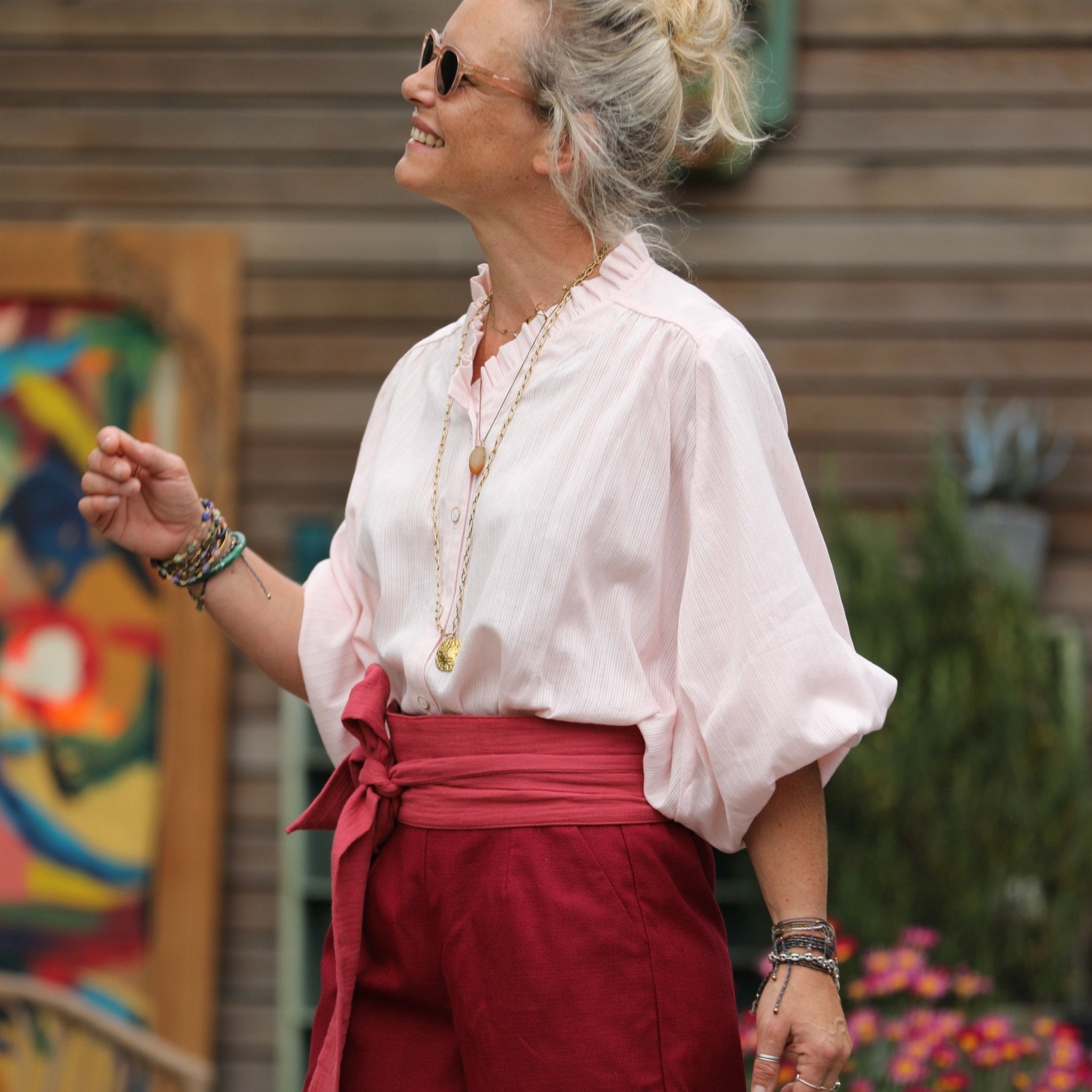 Blouse Miléna - Dobby en coton tressé rose poudré