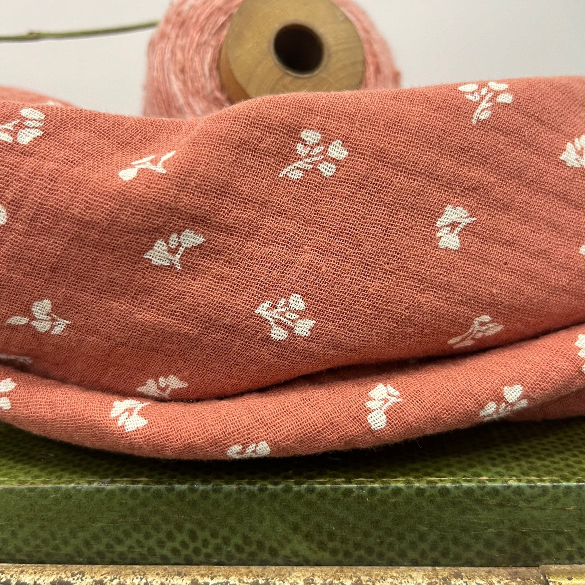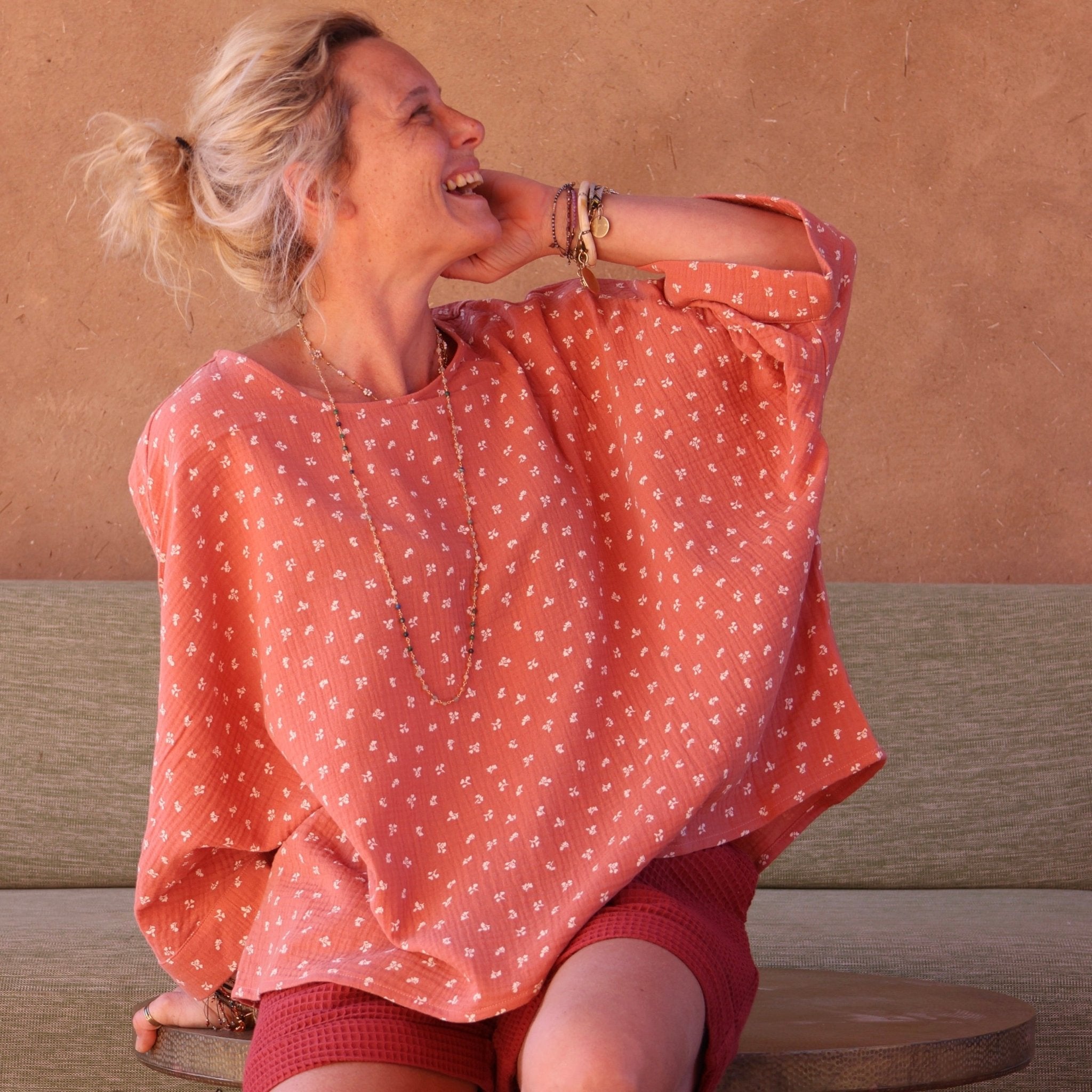 Blouse Nao double gaze de coton rose boisé "feuillage"