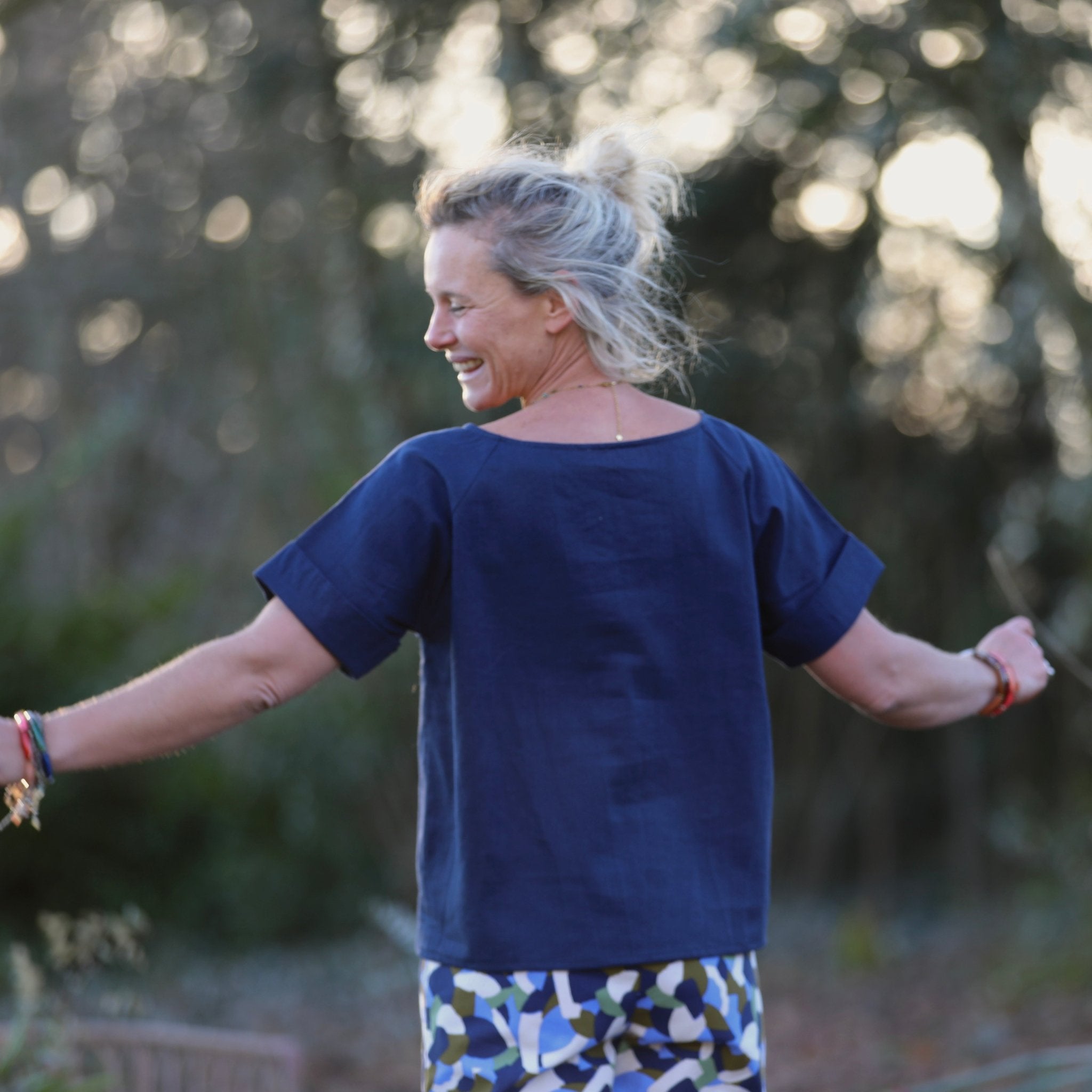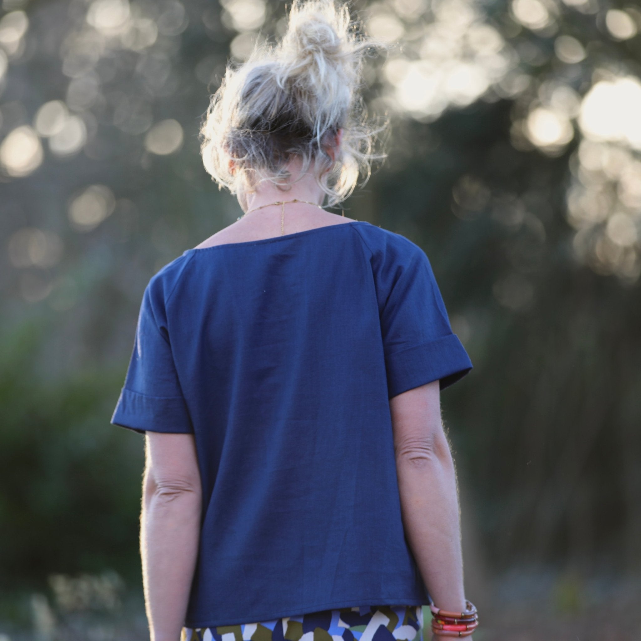Les manches courtes se terminent par un pli délicat, apportant une touche de structure tout en légèreté. Romy est pensée pour se poser facilement au-dessus d’un pantalon ou d’une jupe, avec cette allure naturelle et élégante qui signe le vestiaire Quintessence.