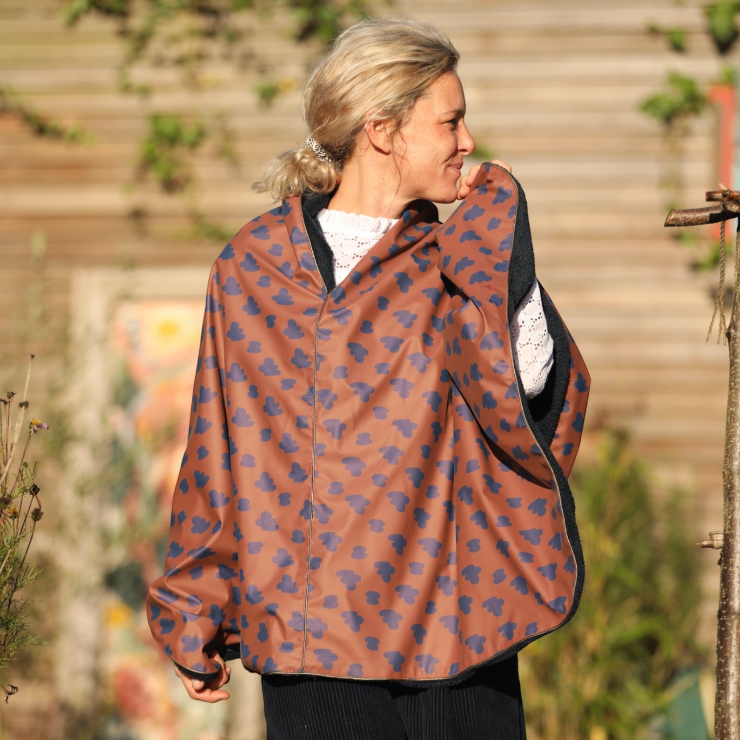 Cape midi Eugénie imperméable - nuages/polaire bleu marine