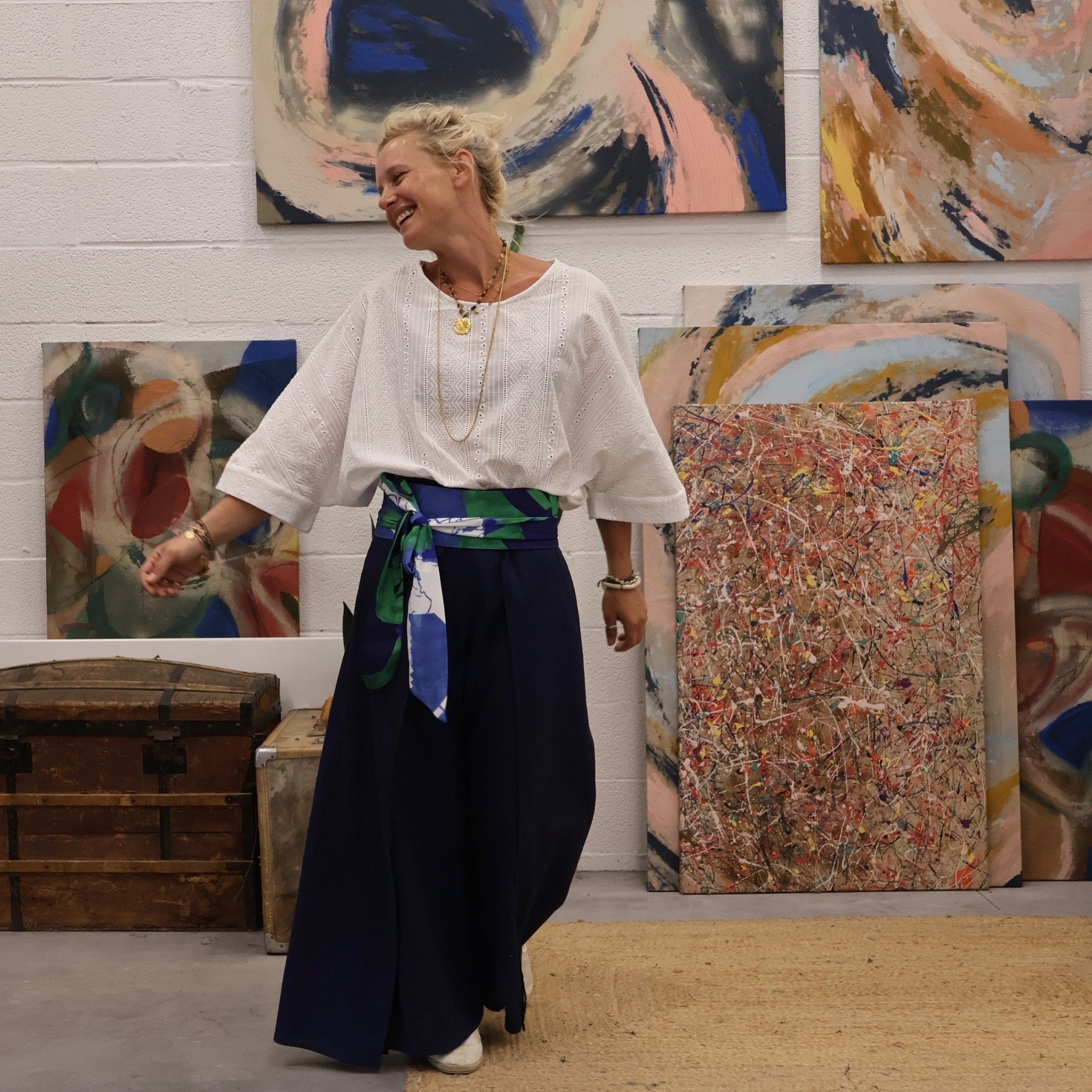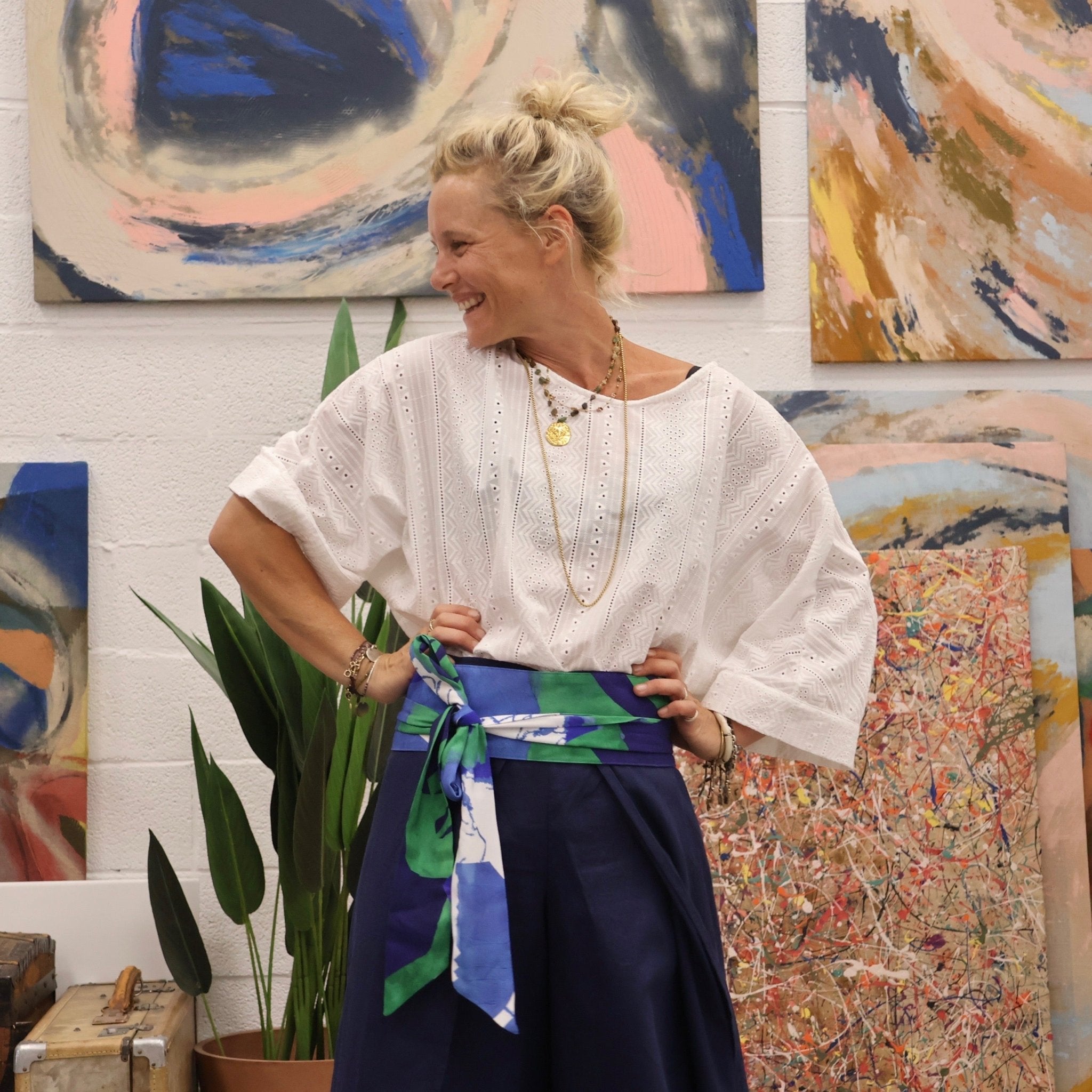 Ceinture Anita - viscose aquarelle-craie bleu/vert