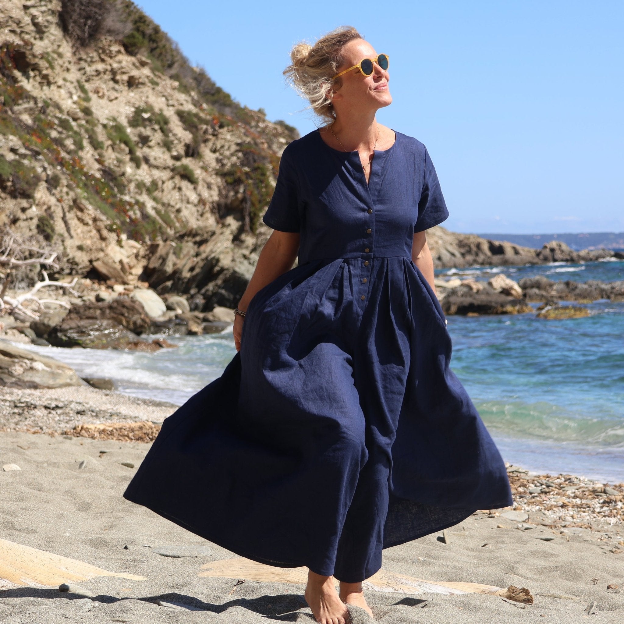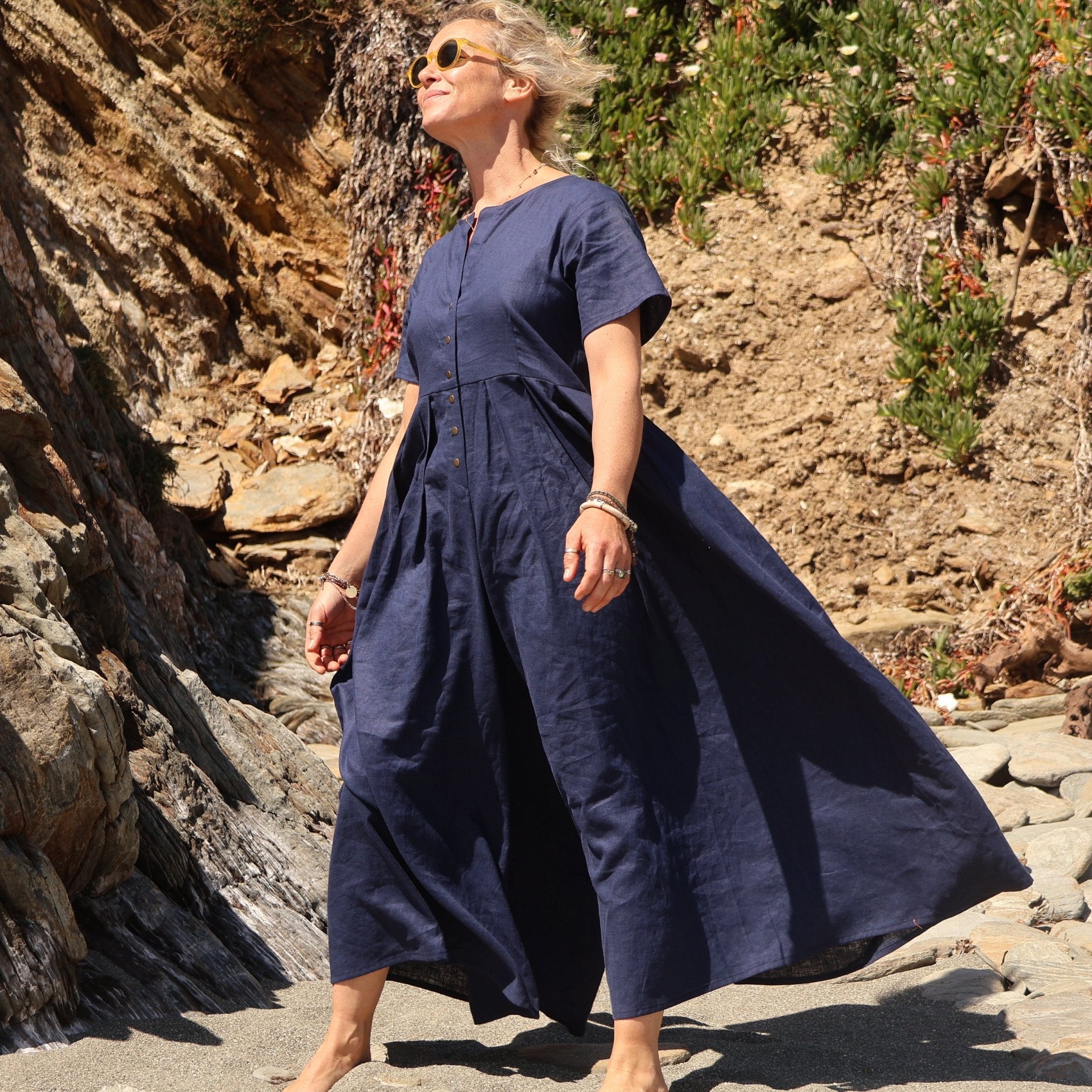La combi India en lin bleu indigo - fourche courte adaptée jusqu'à 1m63