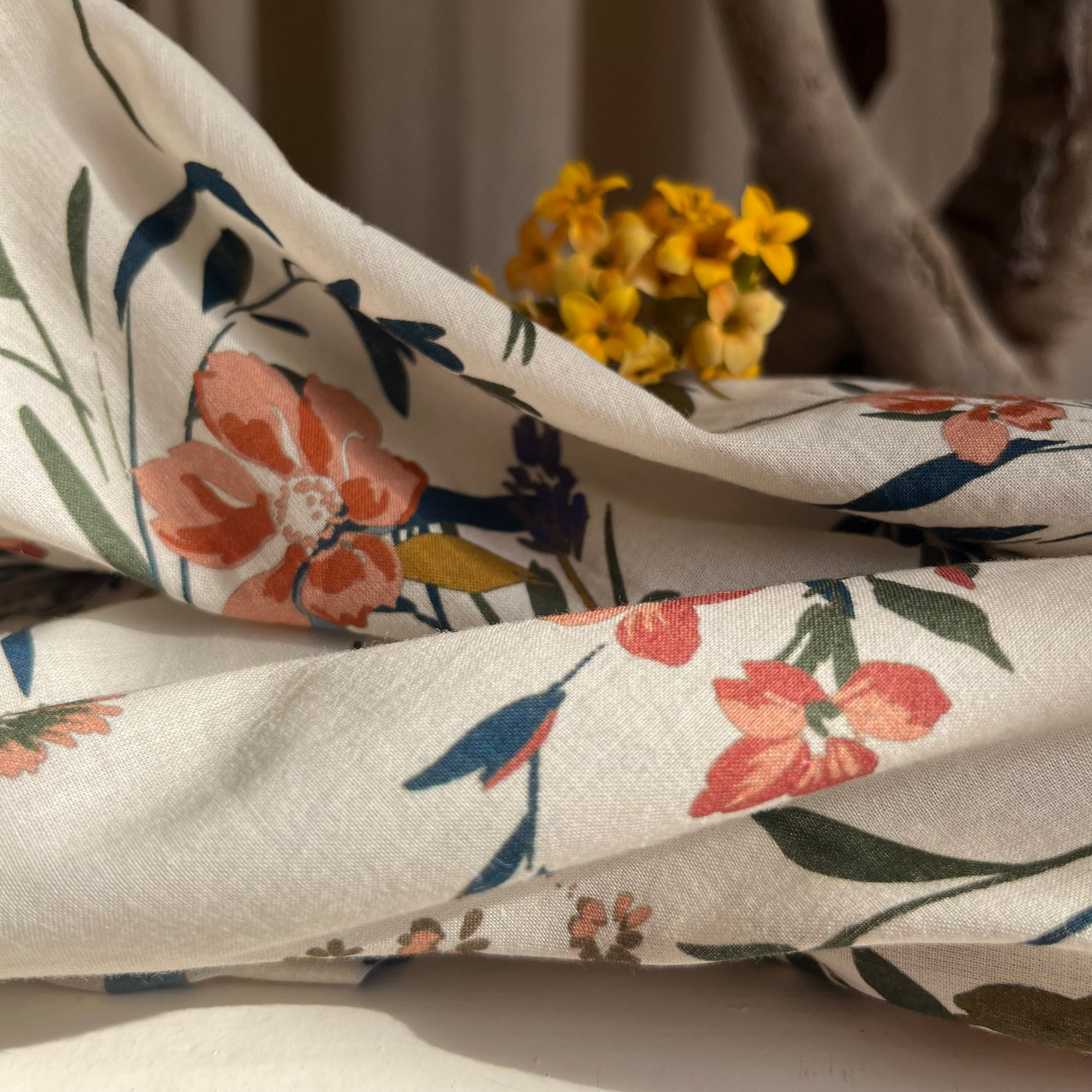 Coupon - voile de coton fleurs des Canaries 130x360 (A54)