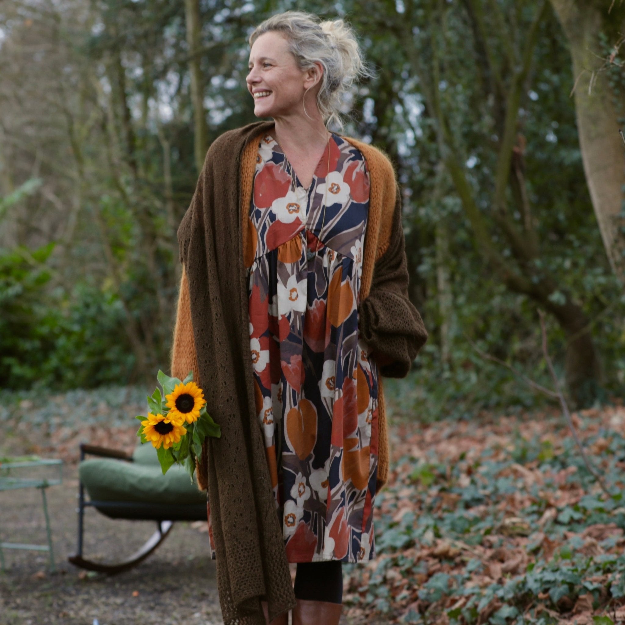 La robe Édonie se porte aussi bien seule avec une paire de bottines pour un look élégant, que sous une maille douce pour une tenue plus réconfortante. Sa lumière subtile et sa longueur midi la rendent idéale pour un style chic au quotidien comme pour une silhouette plus habillée.