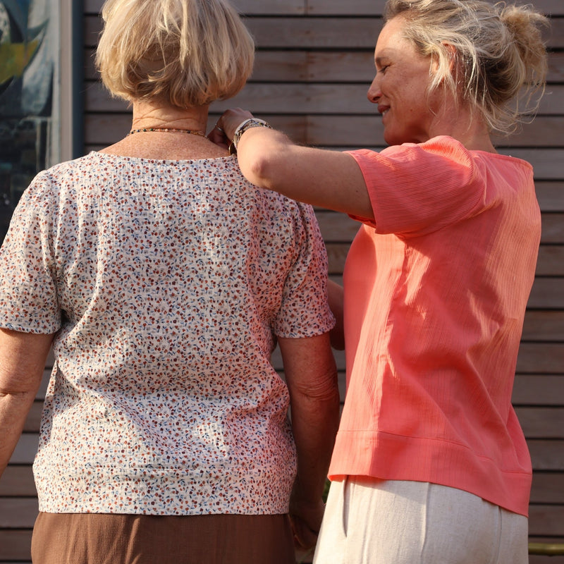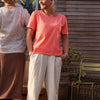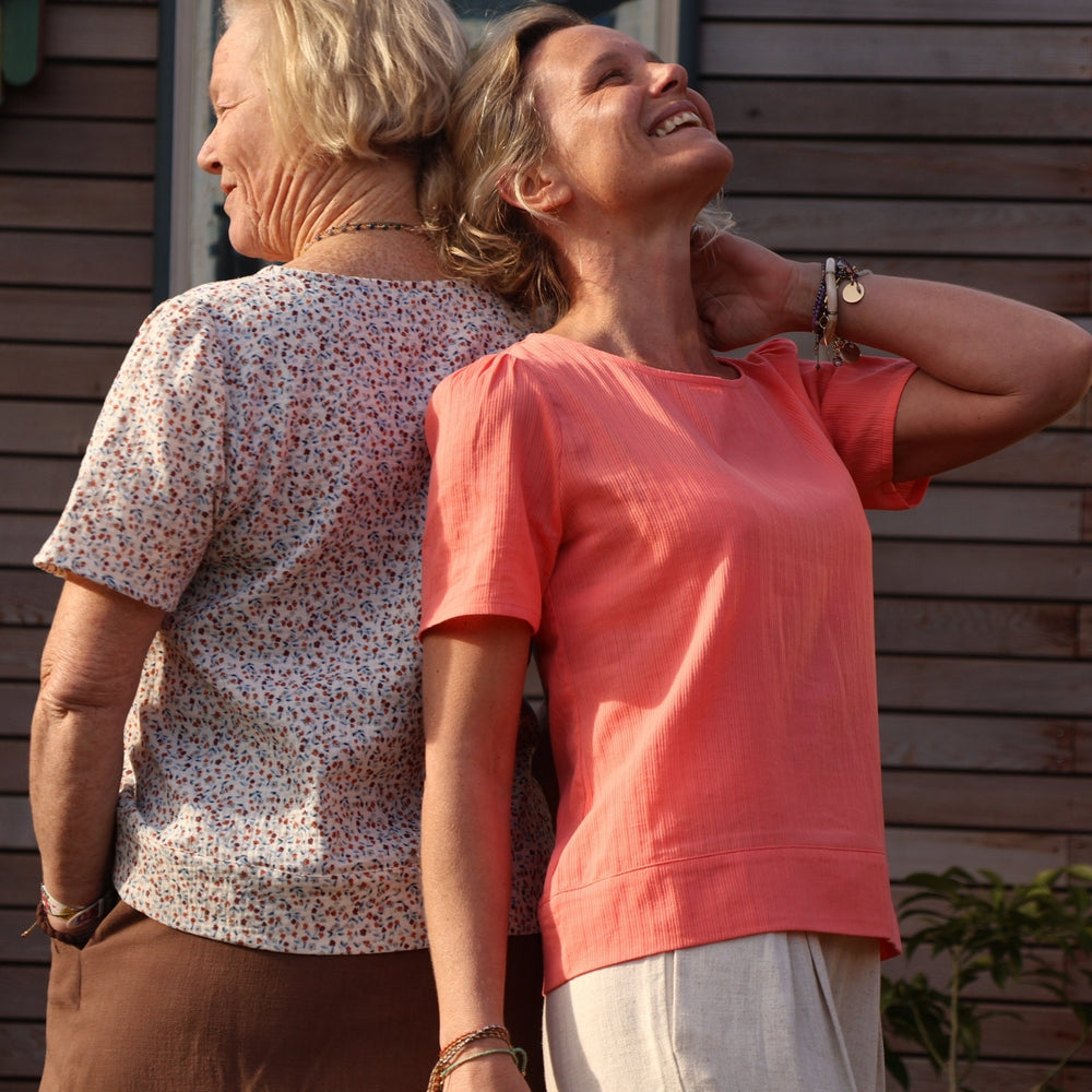 Blouse Eulalie col rond - manches courtes - coton tressé corail