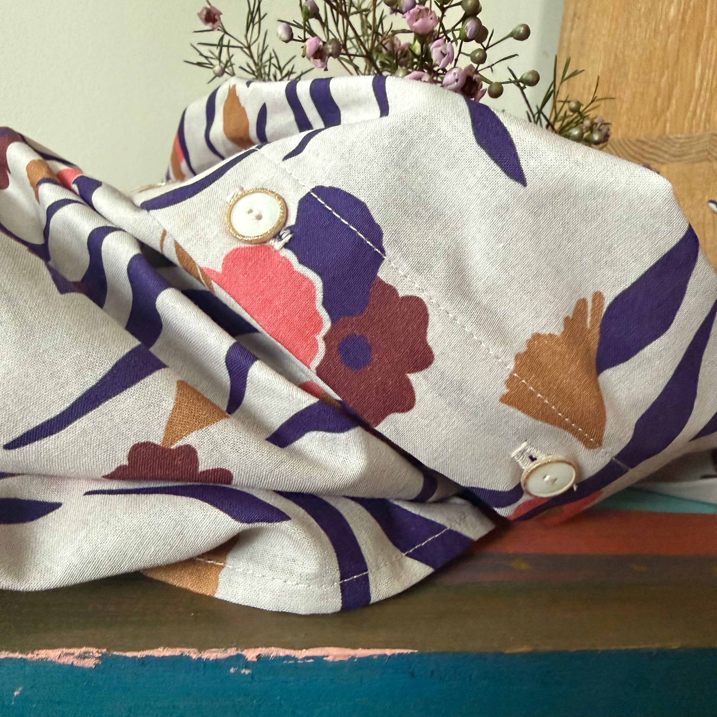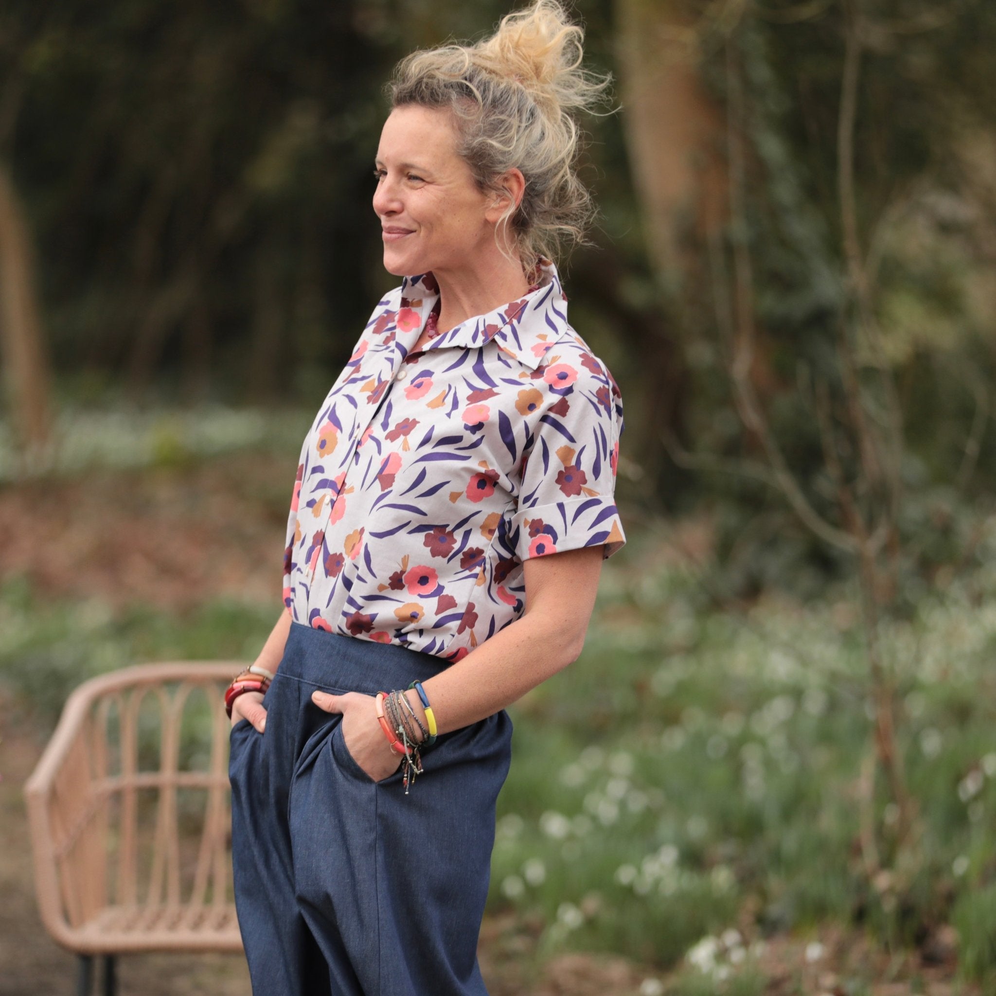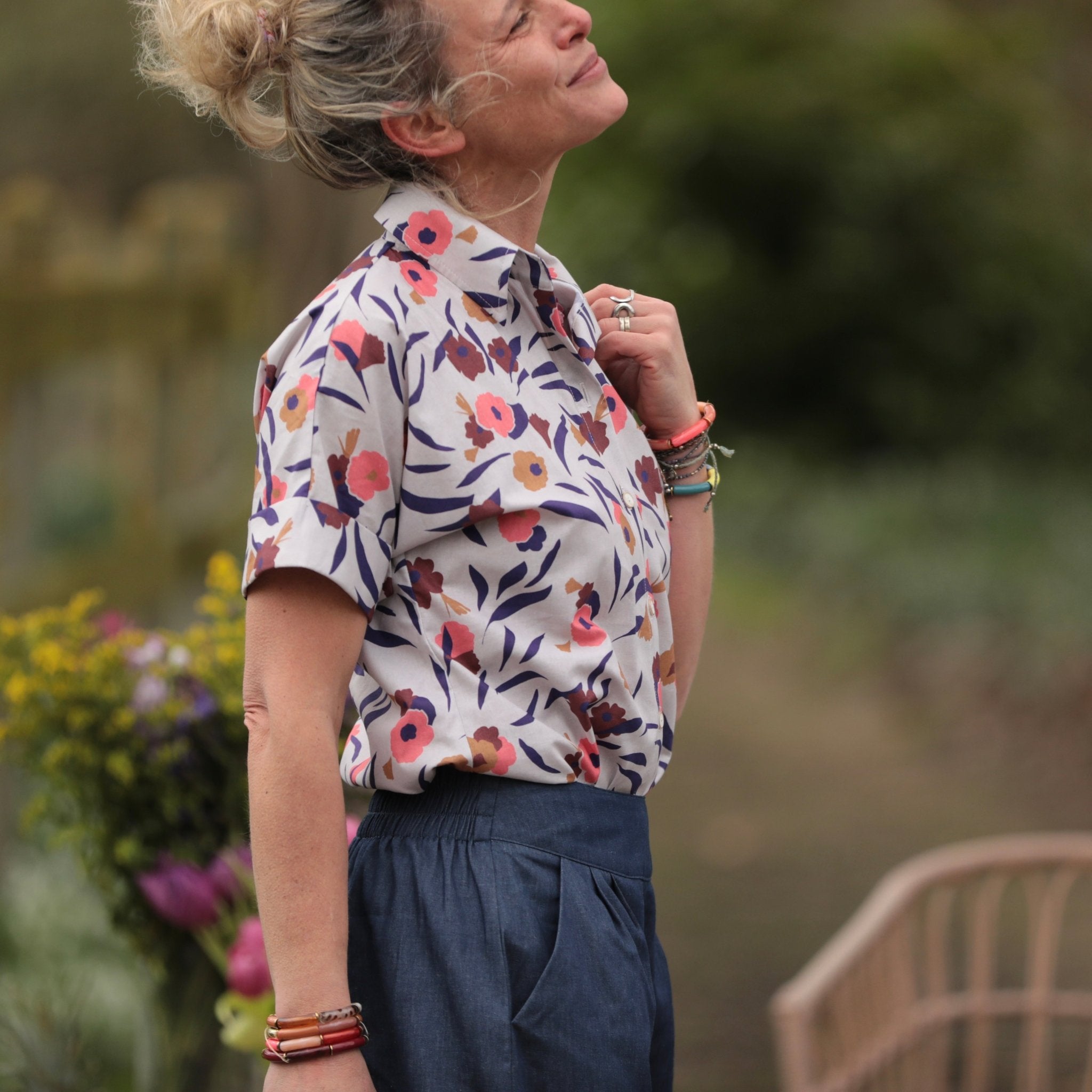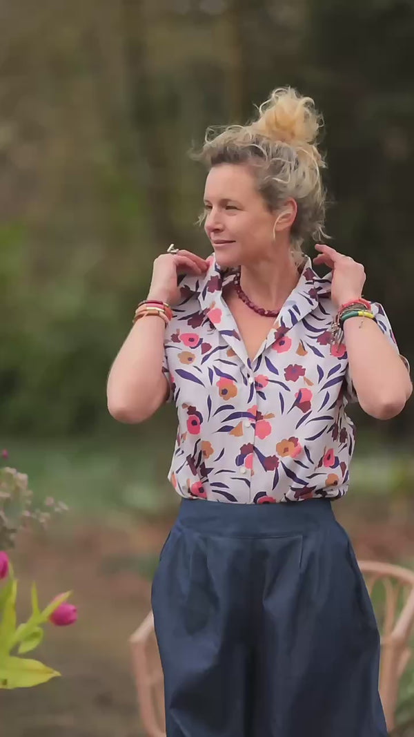 Chemise Honorine - Coton Fleuri écru corail/bleu nuit