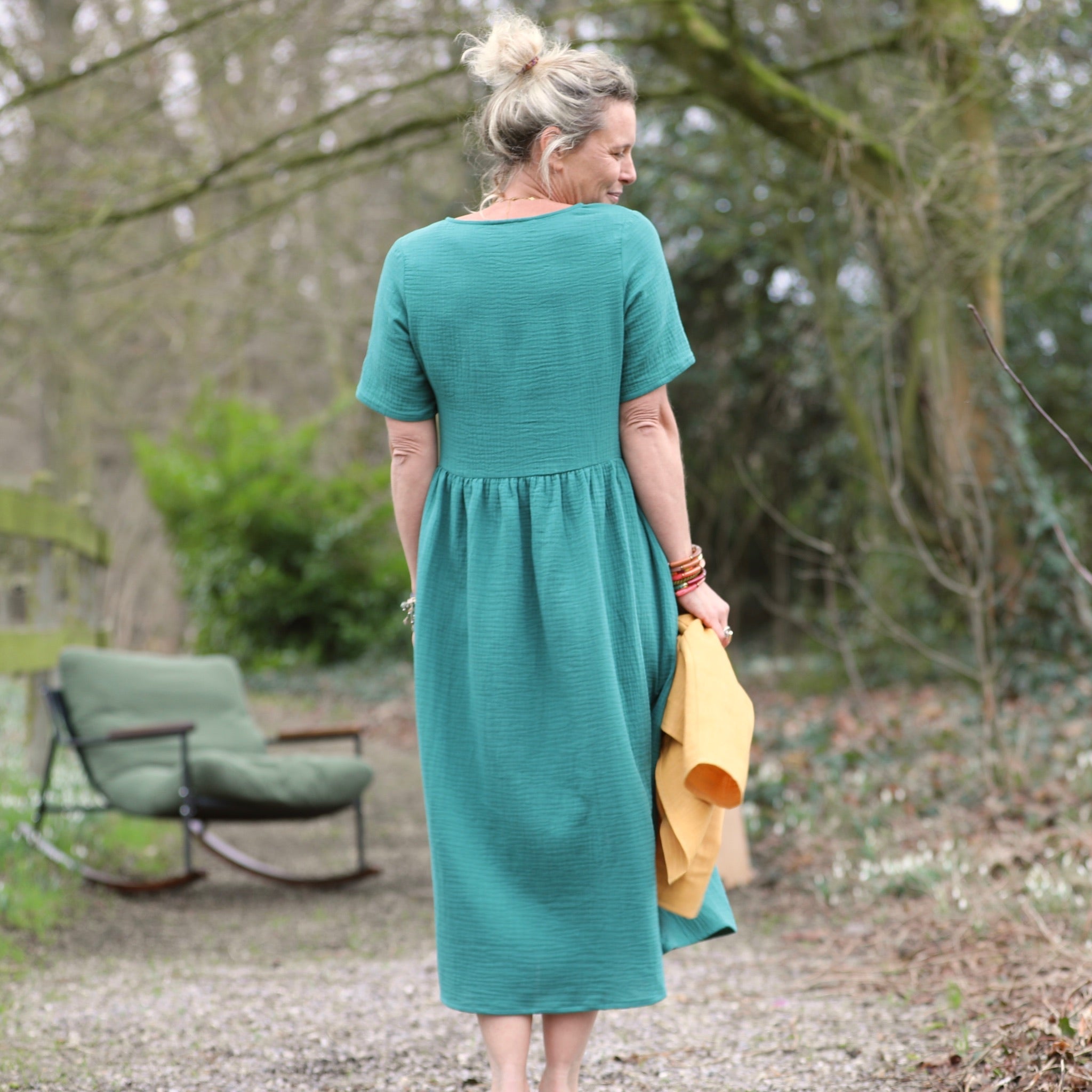 La robe Juliette se porte facilement avec des sandales naturelles pour une allure estivale, des baskets blanches pour un esprit décontracté ou une veste légère pour la mi-saison. Sa couleur fraîche se marie harmonieusement avec des tons écrus, beiges ou camel.Pour quelle silhouette ?