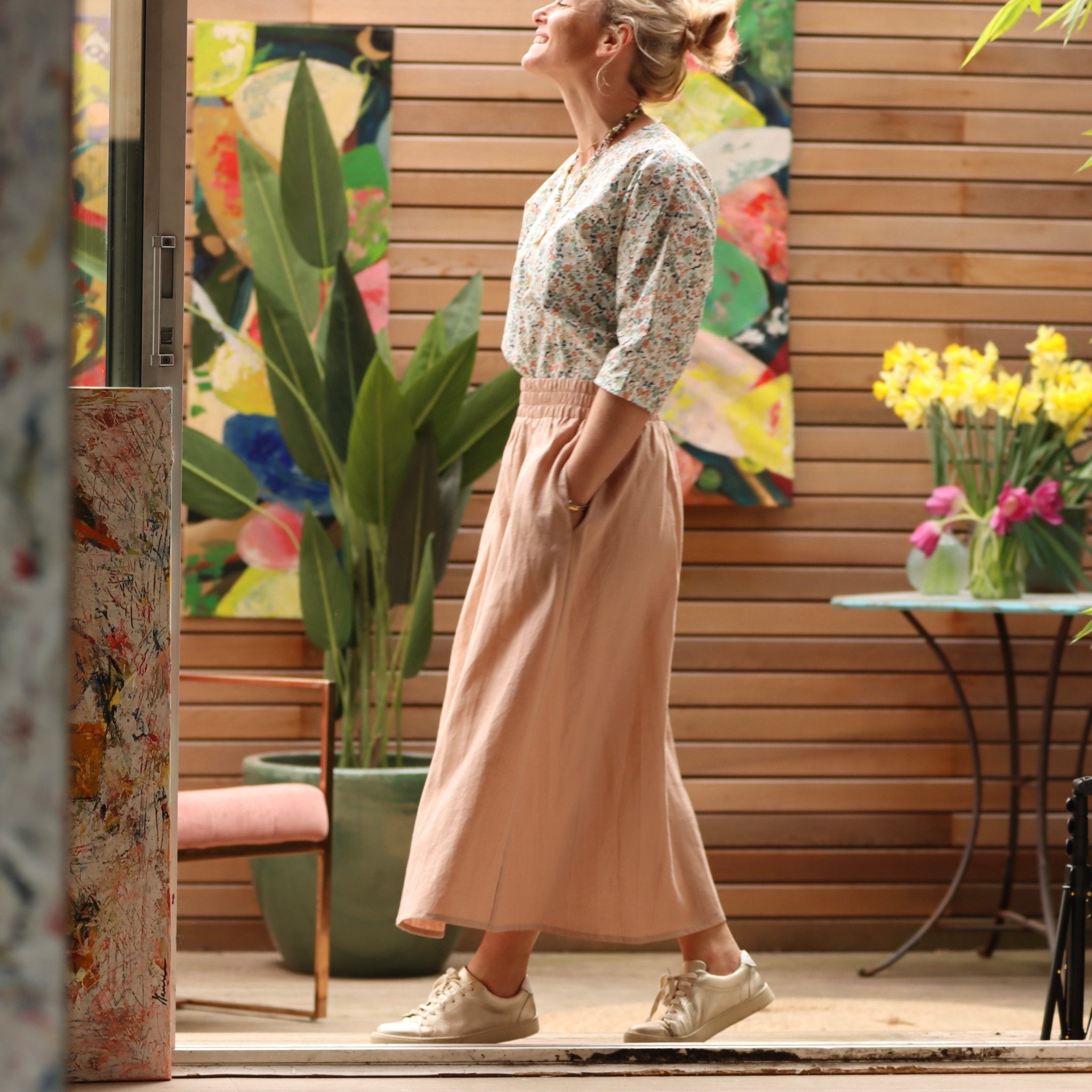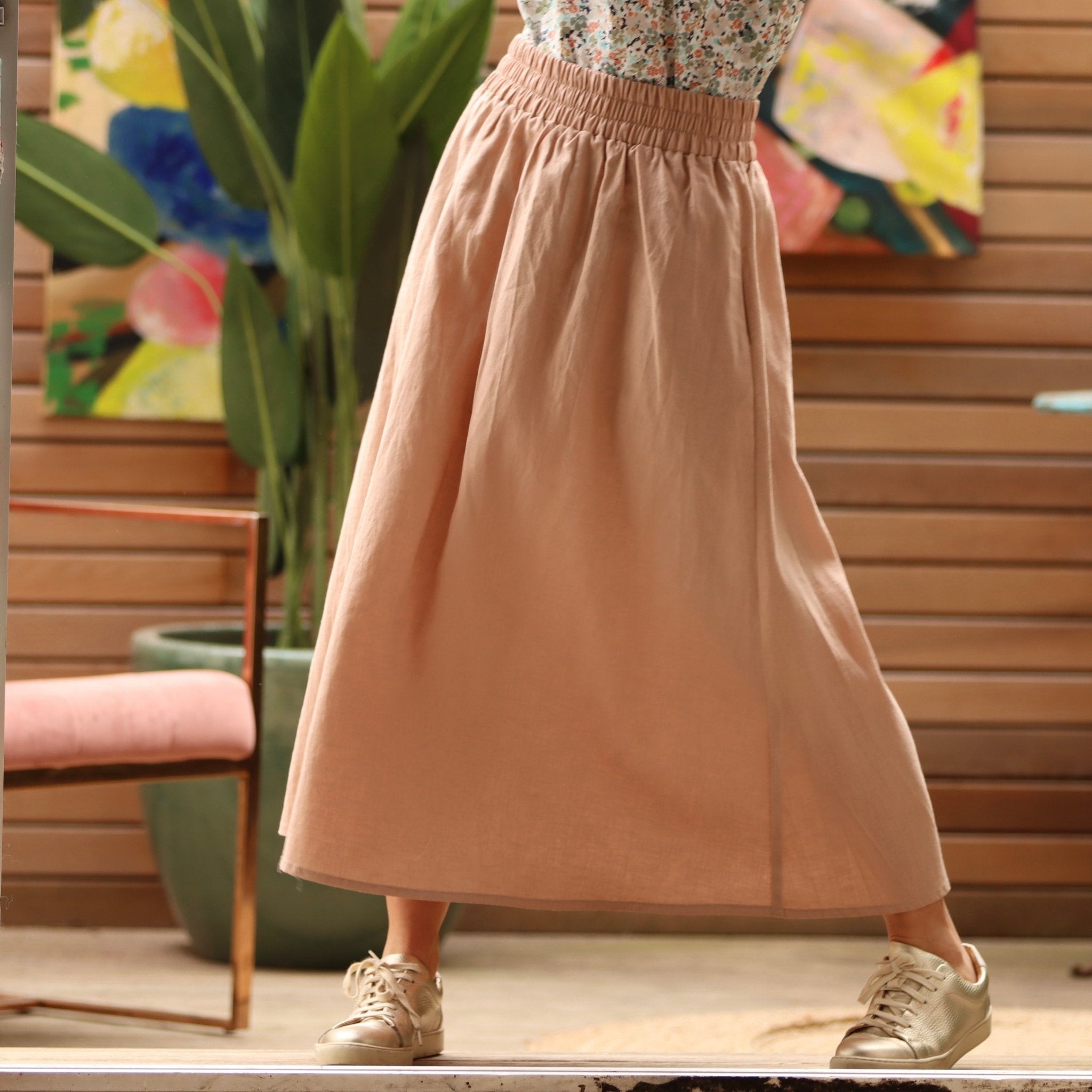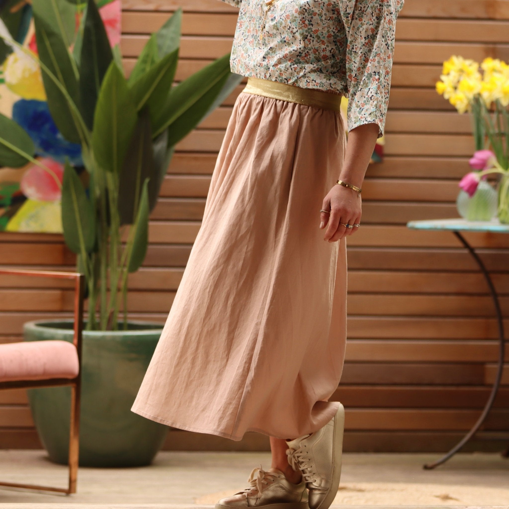 Jupe longue en lin rose poudré Gaïa - Quintessence