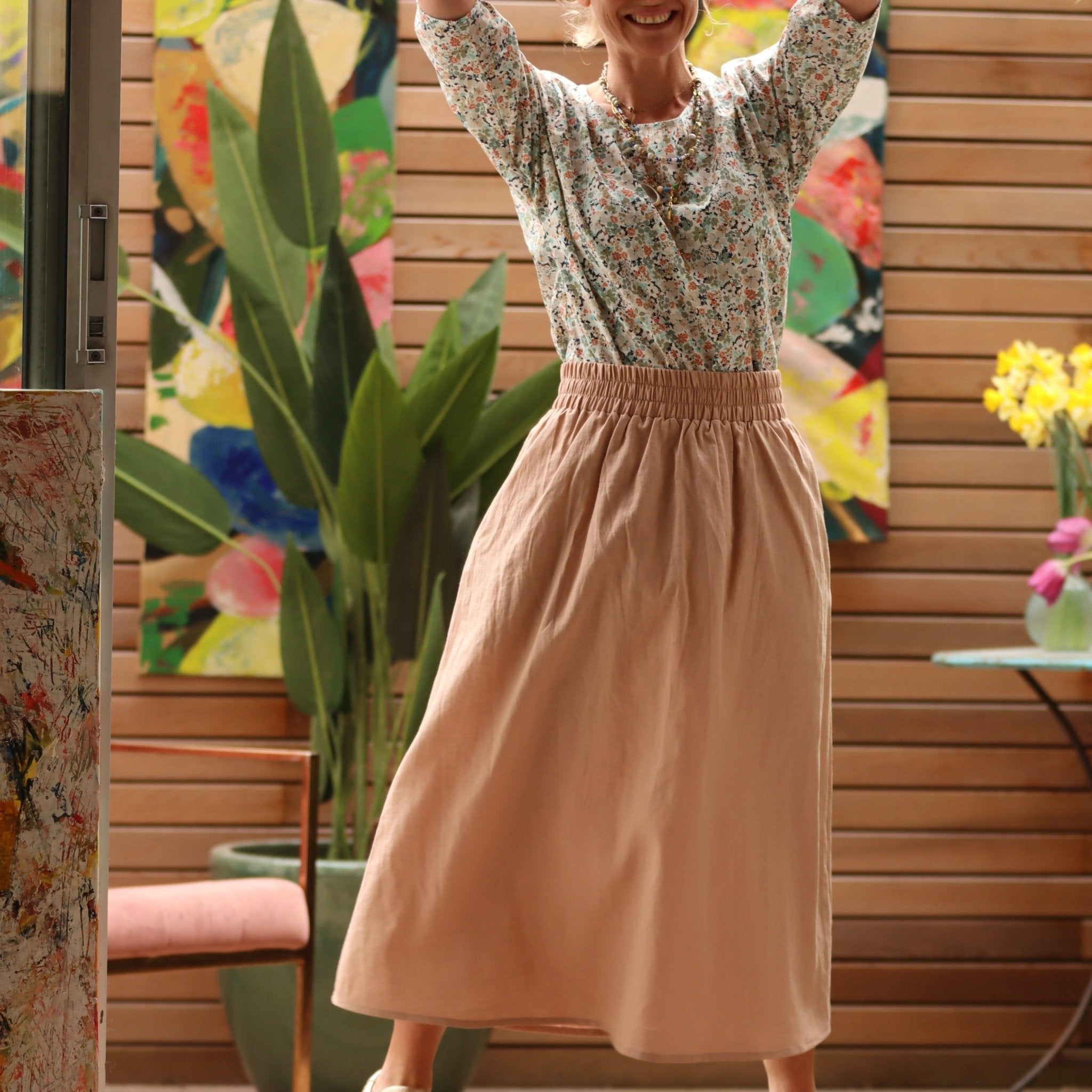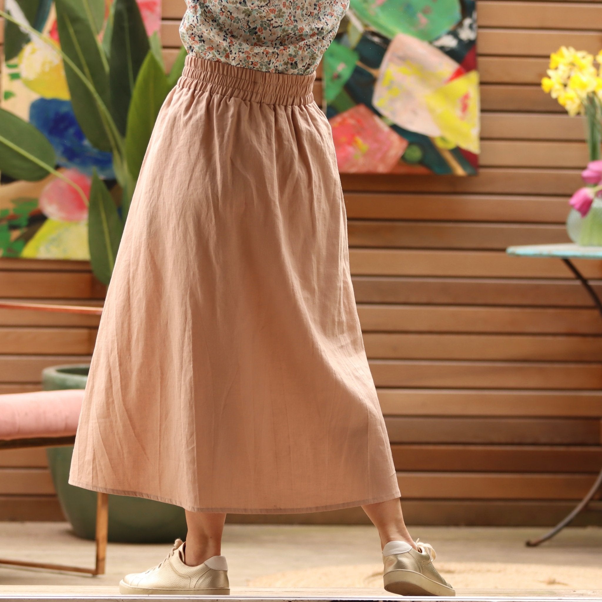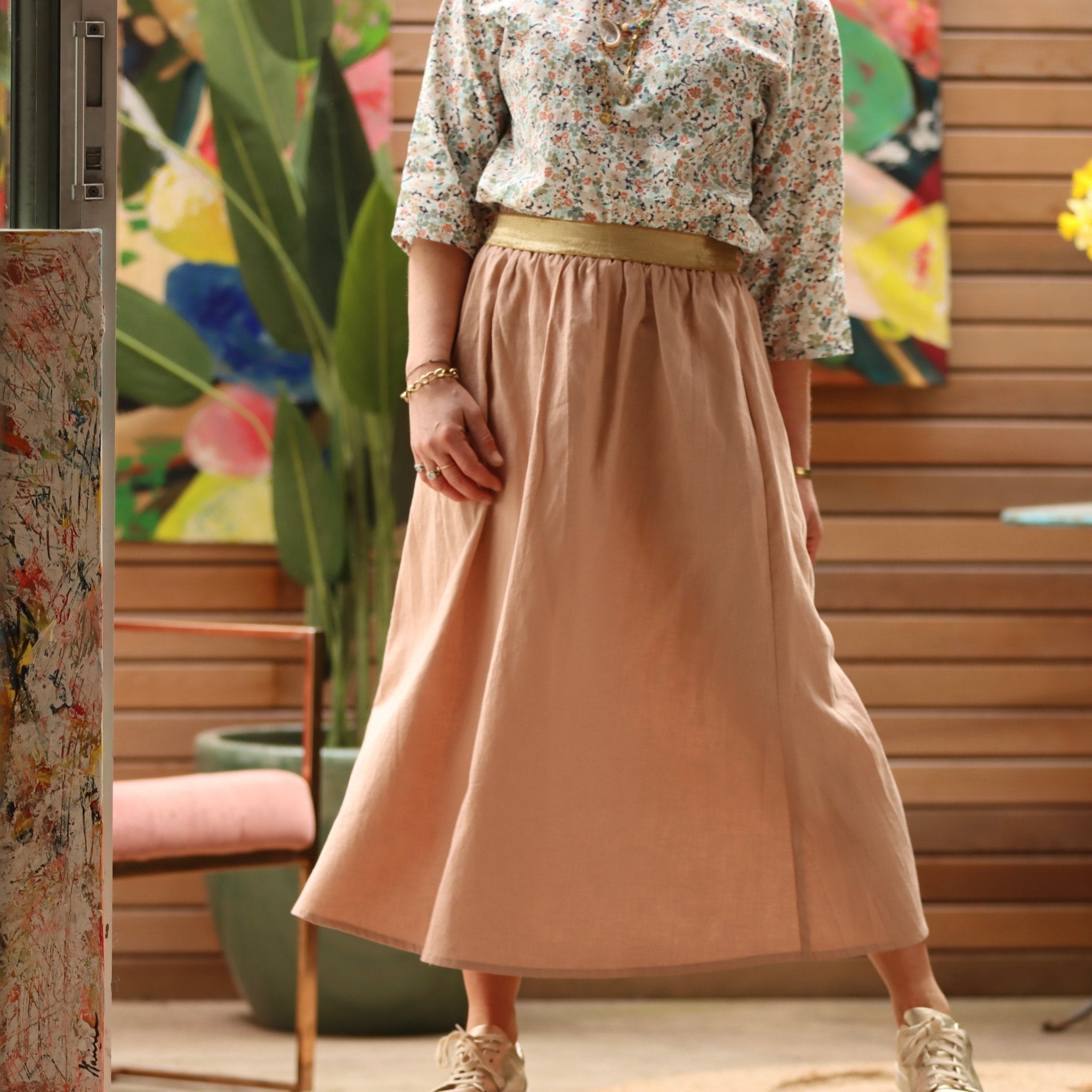 Jupe longue en lin rose poudré Gaïa - Quintessence