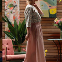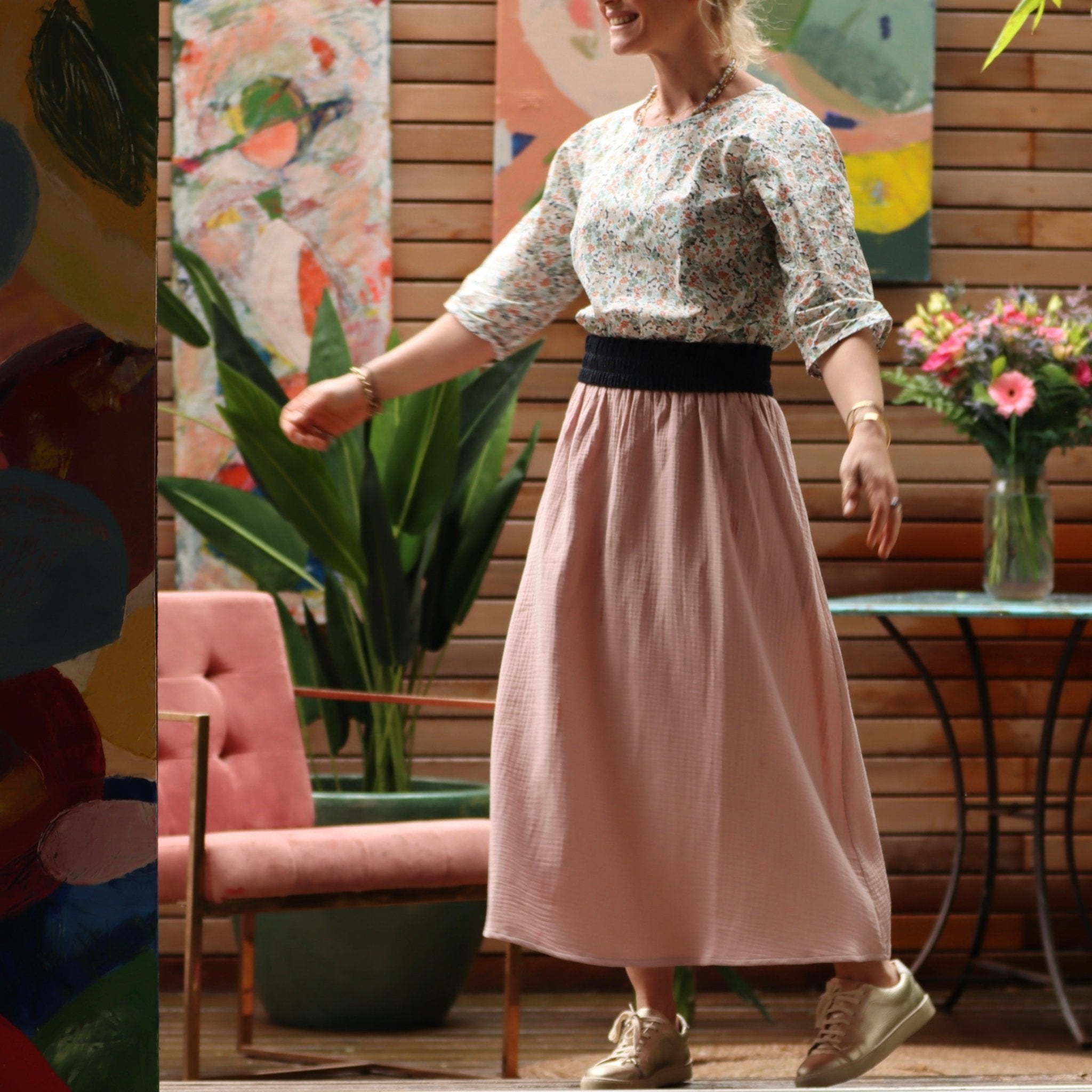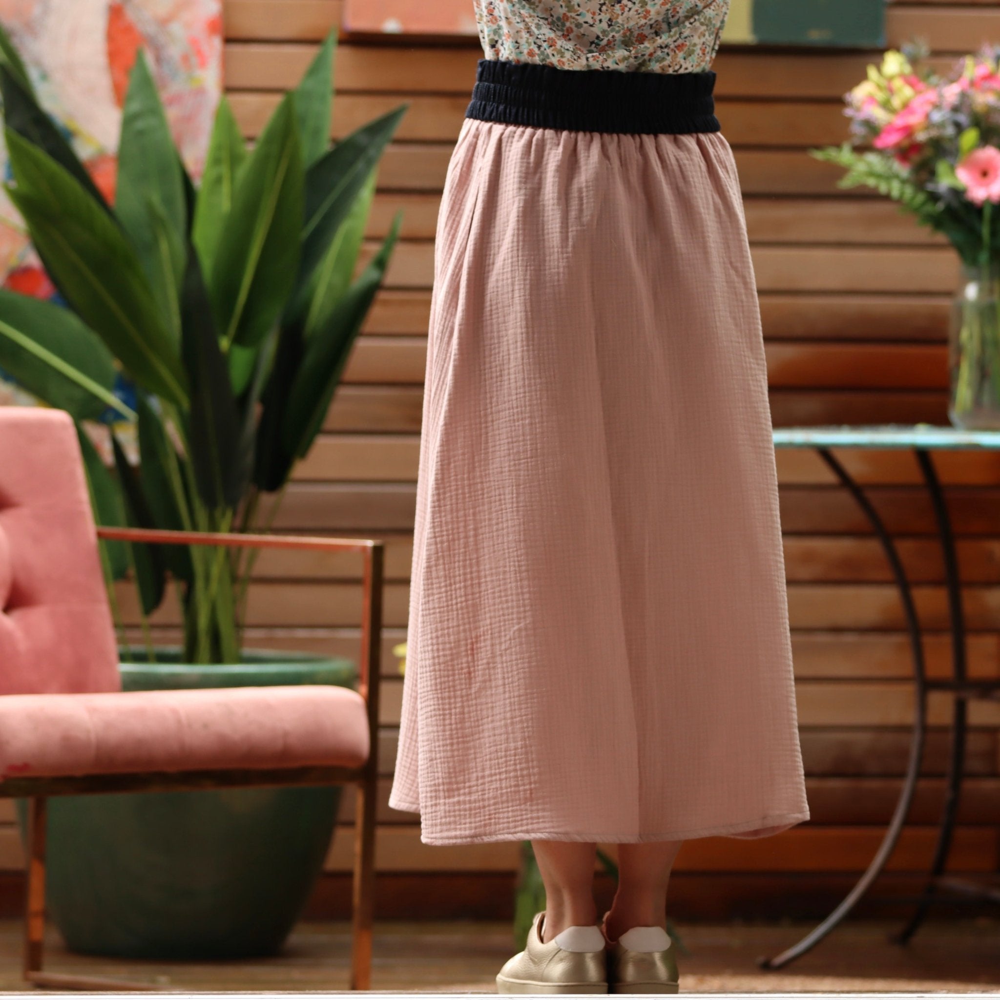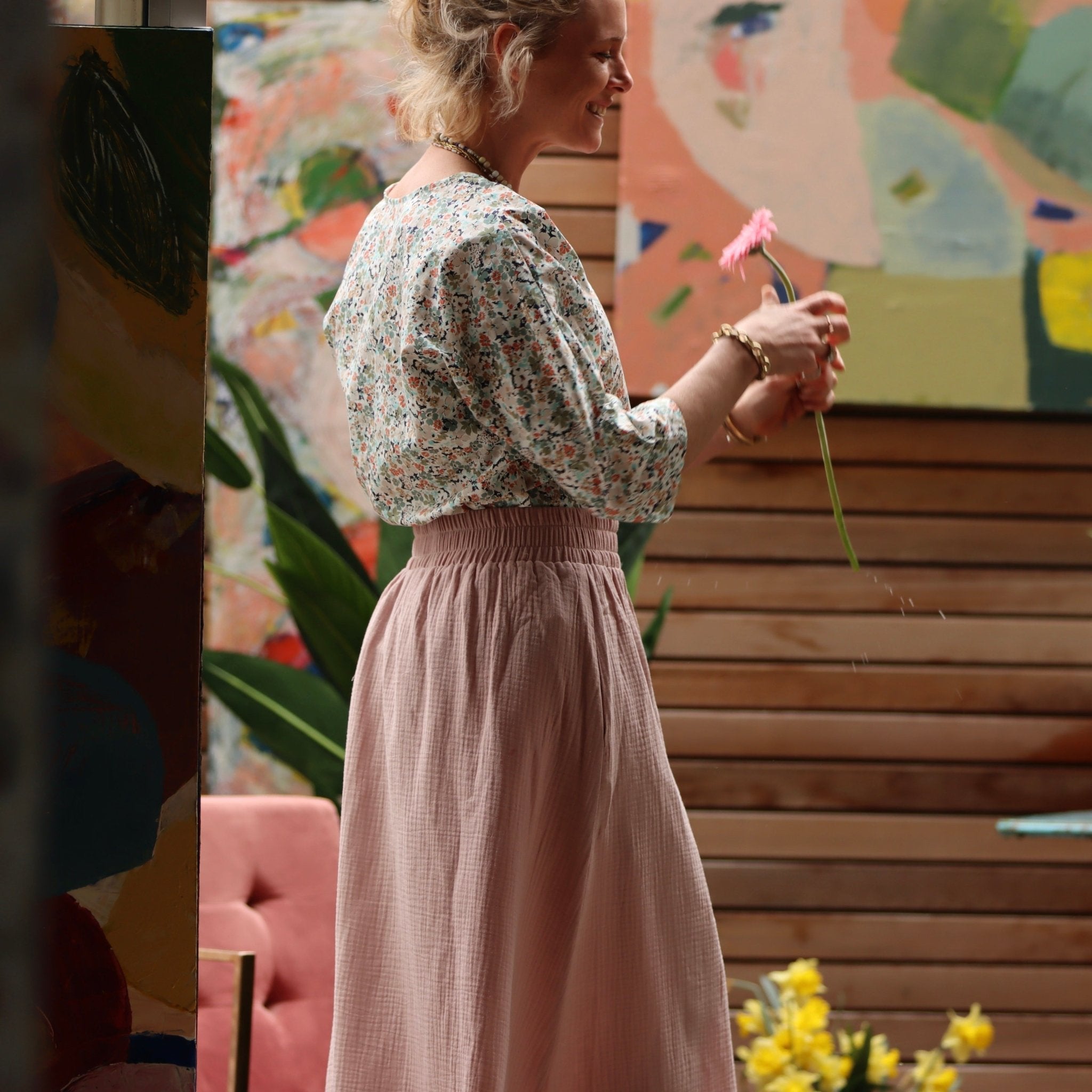 Jupe longue rose poudré en gaze de coton Gaïa - Quintessence