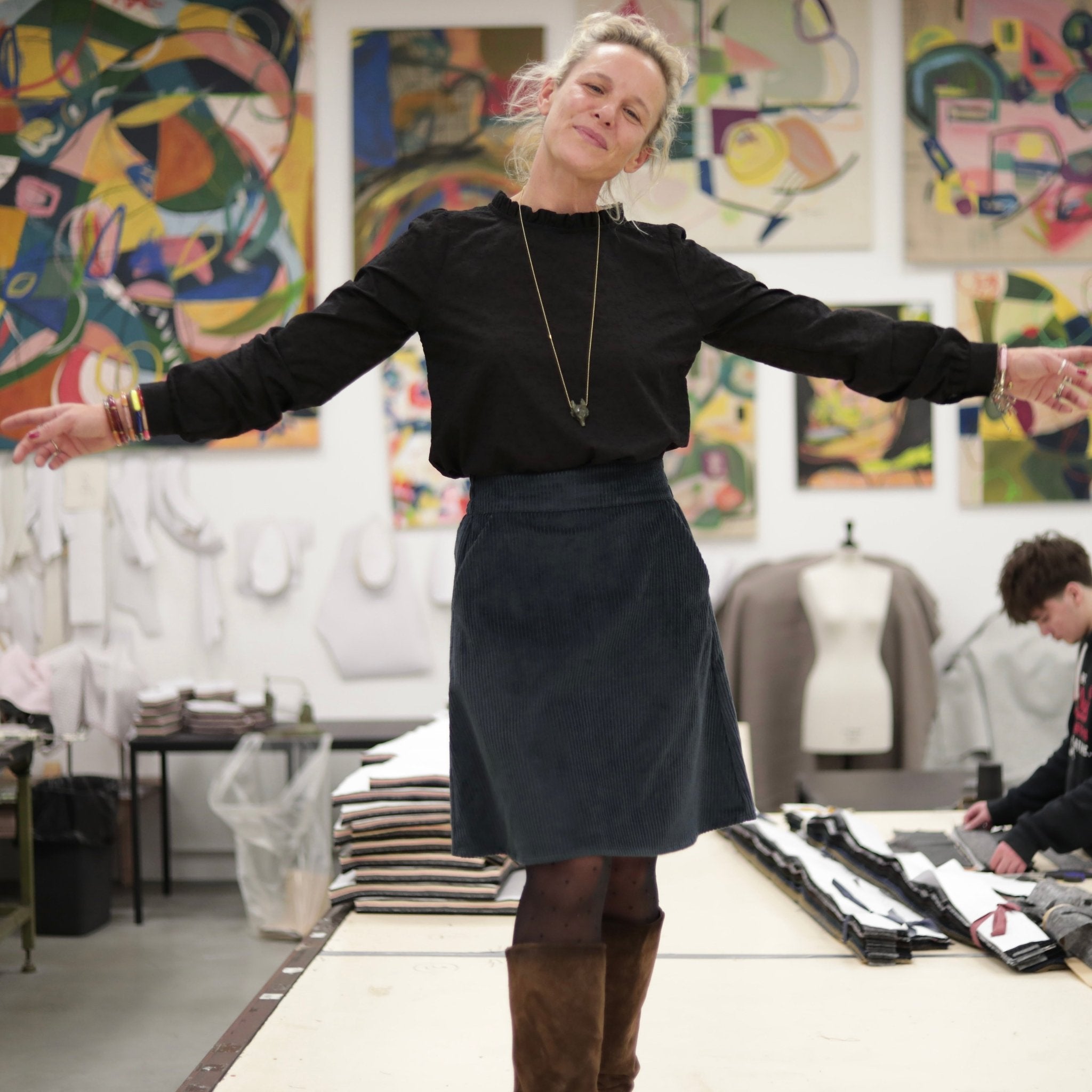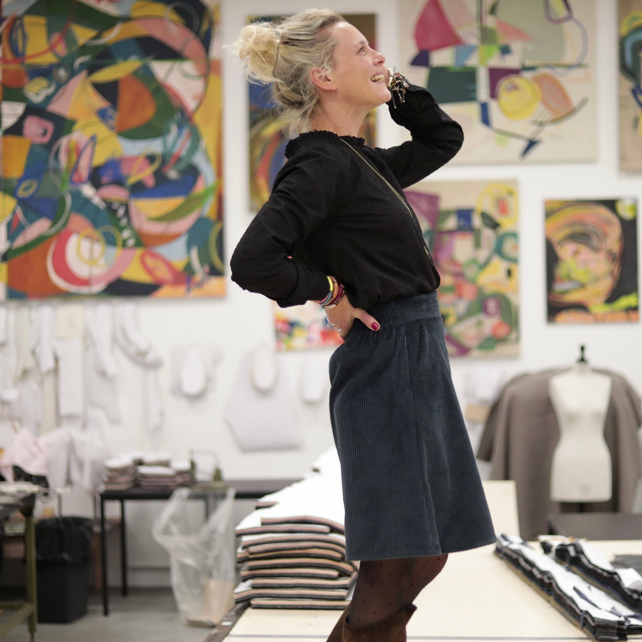 Fabriquée en France dans notre atelier à Roubaix, la jupe Maya incarne le savoir-faire Quintessence et le goût du détail soigné.