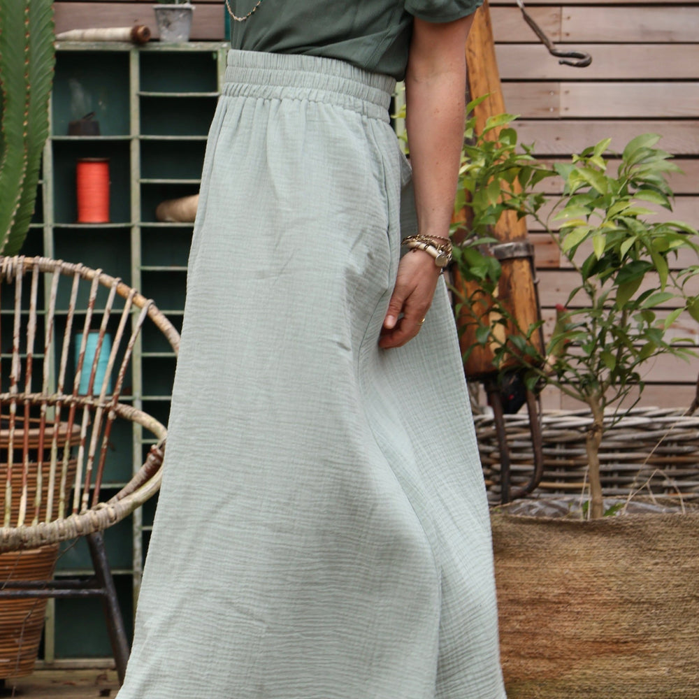 Jupe Tao double gaze de coton vert d'eau - 92cm de hauteur