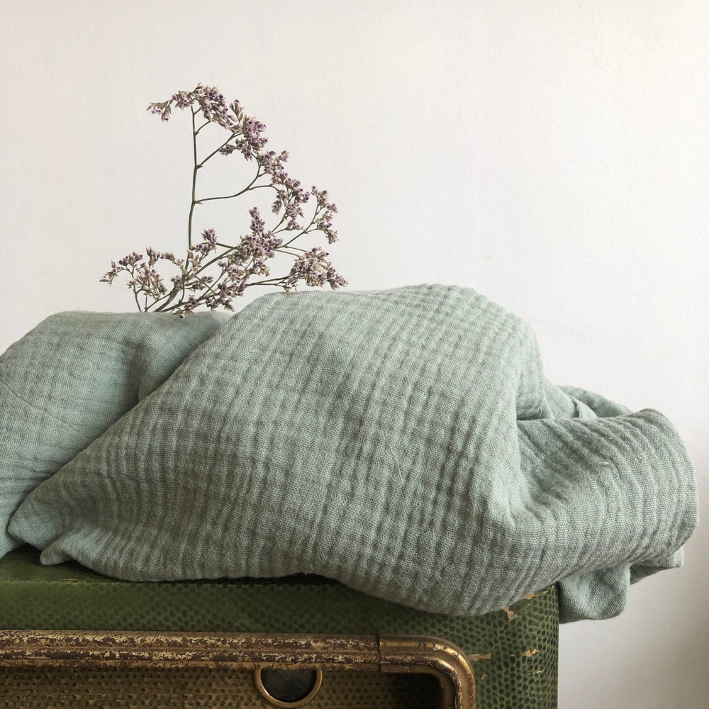 La gaze de coton : lavage à basse température (30°) et un séchage à l’air libre. Elle ne nécessite pas de repassage.