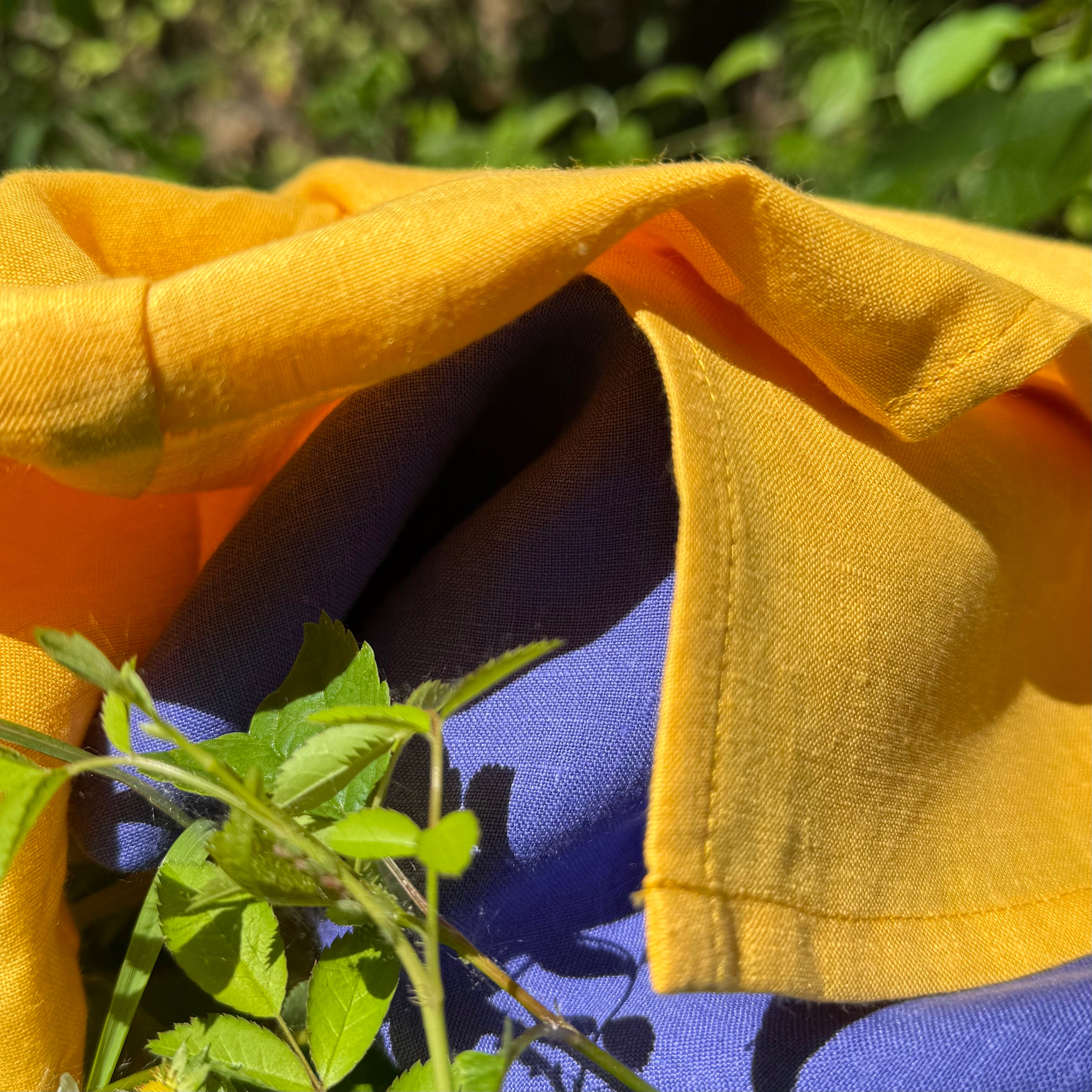 Le lin : lavage à basse température (30°) et un essorage à maximum 600 tours minutes. Sèche très vite à l’air libre.