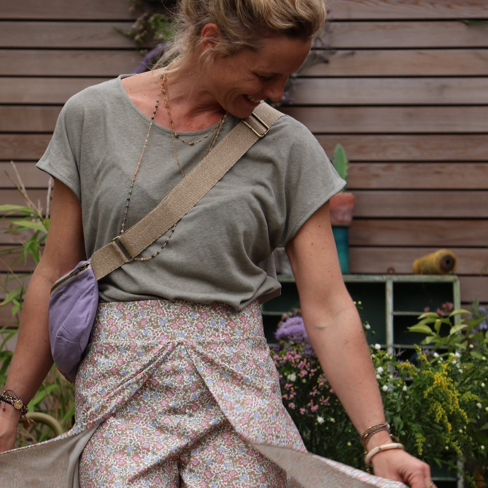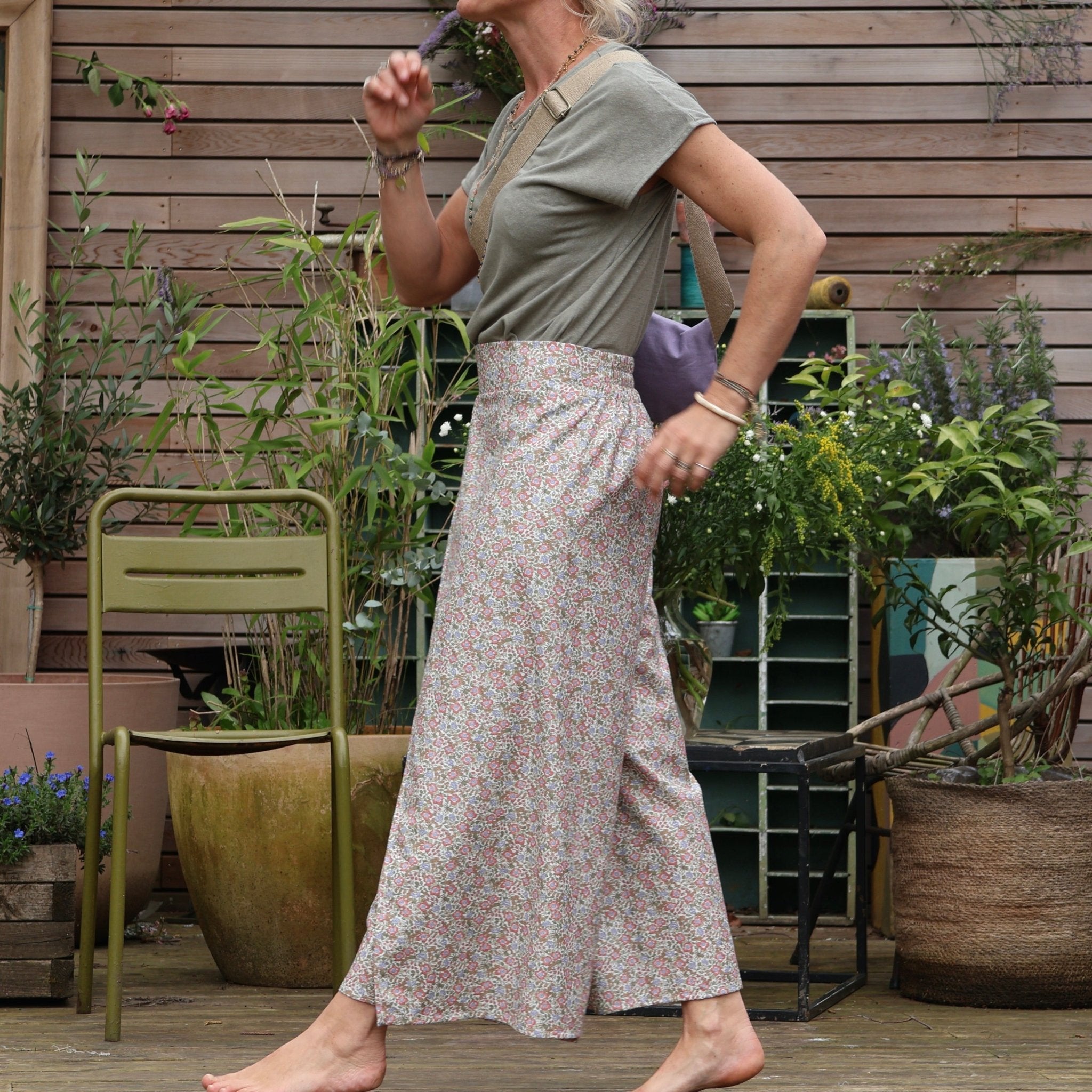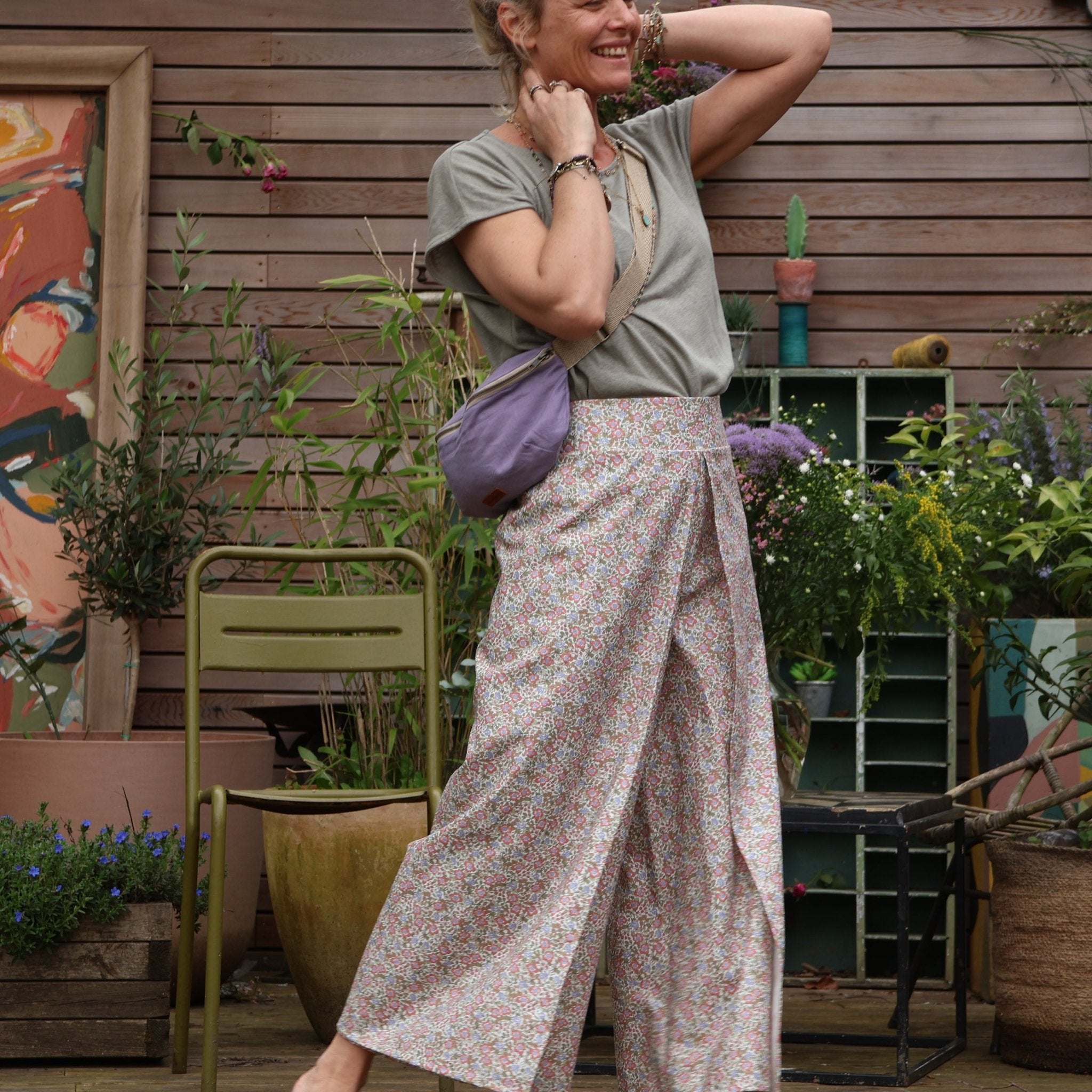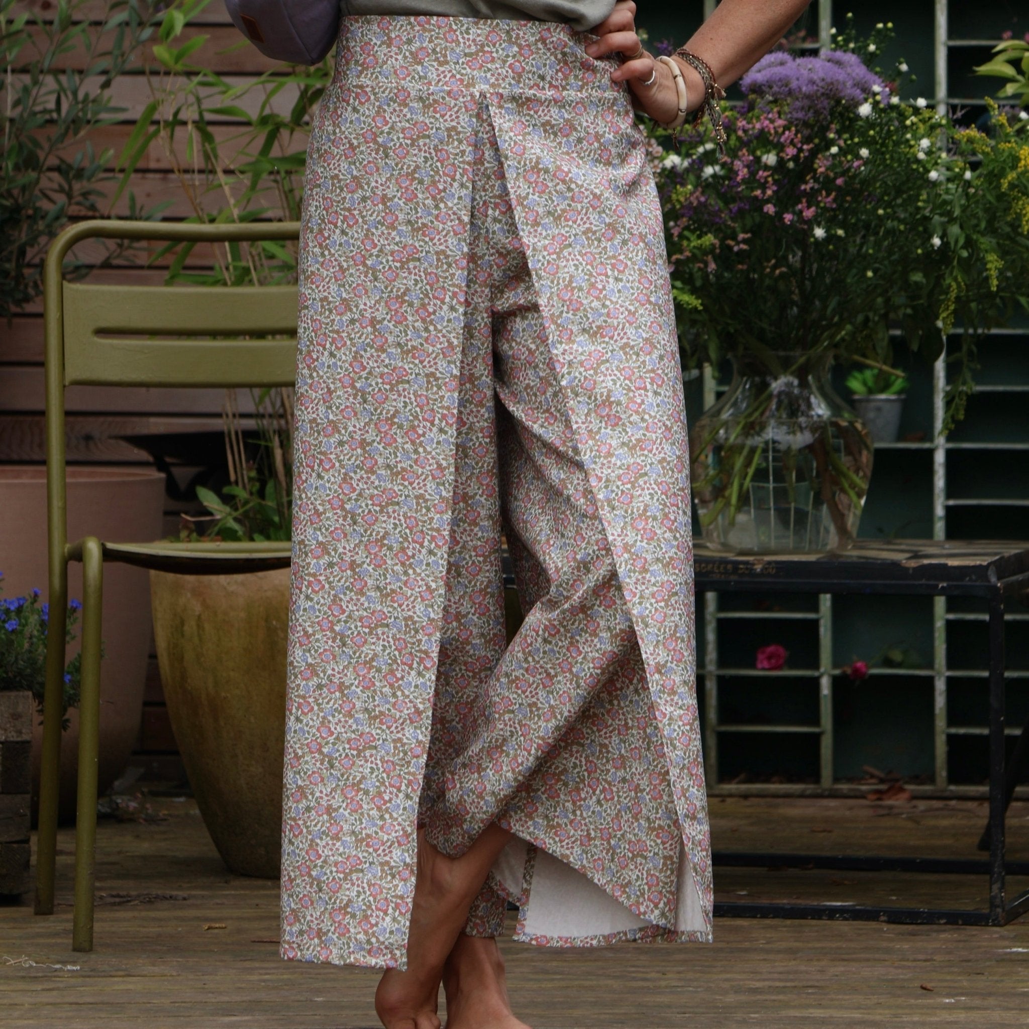 Pantalon drapé Mathilde - sergé de coton fleuri d'été