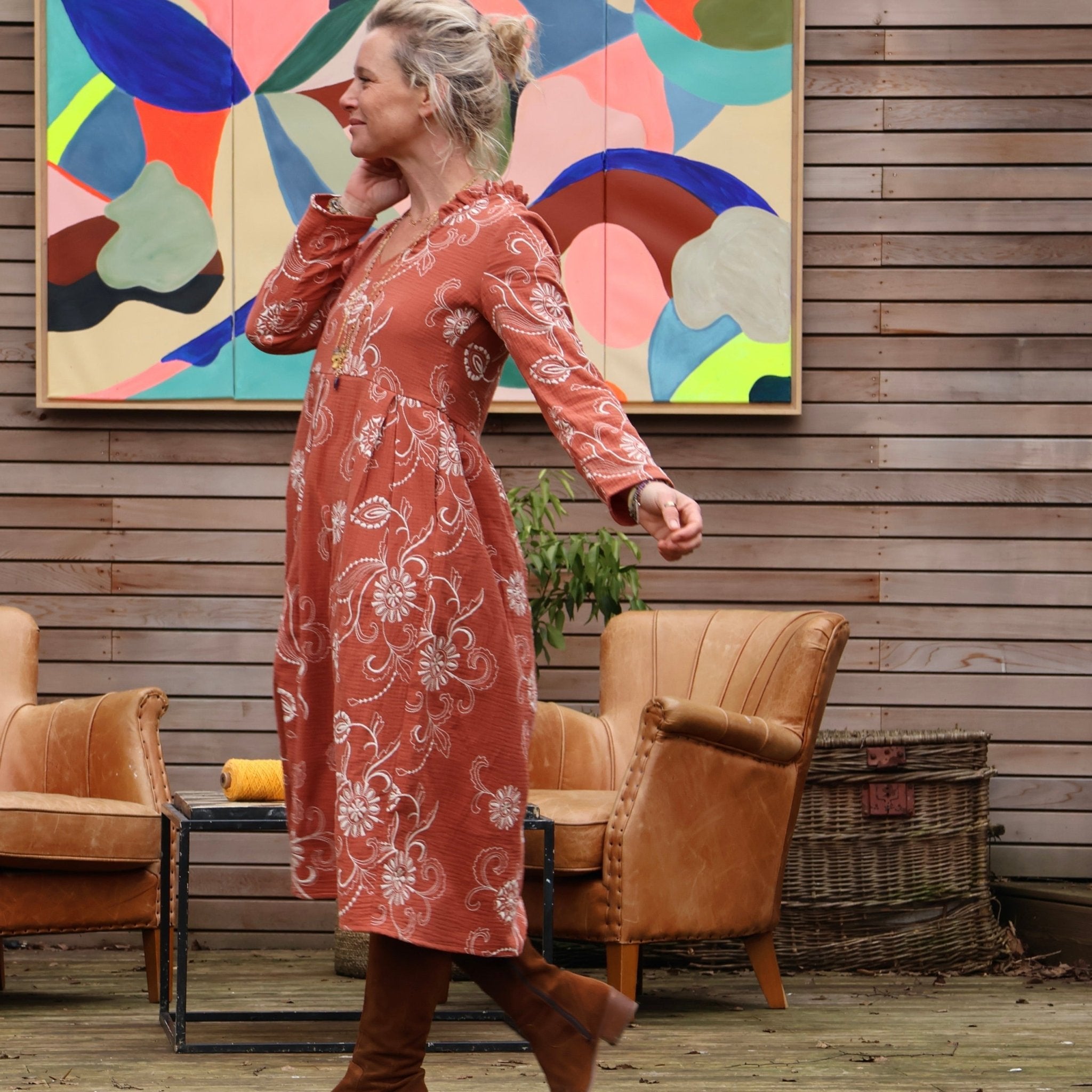 Robe Aria - double gaze de coton brodée terracotta