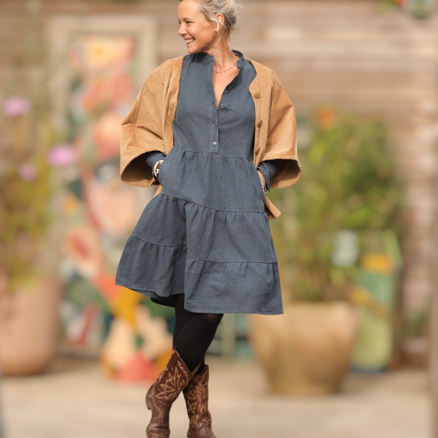 Robe Bella - lin stone wash bleu navy