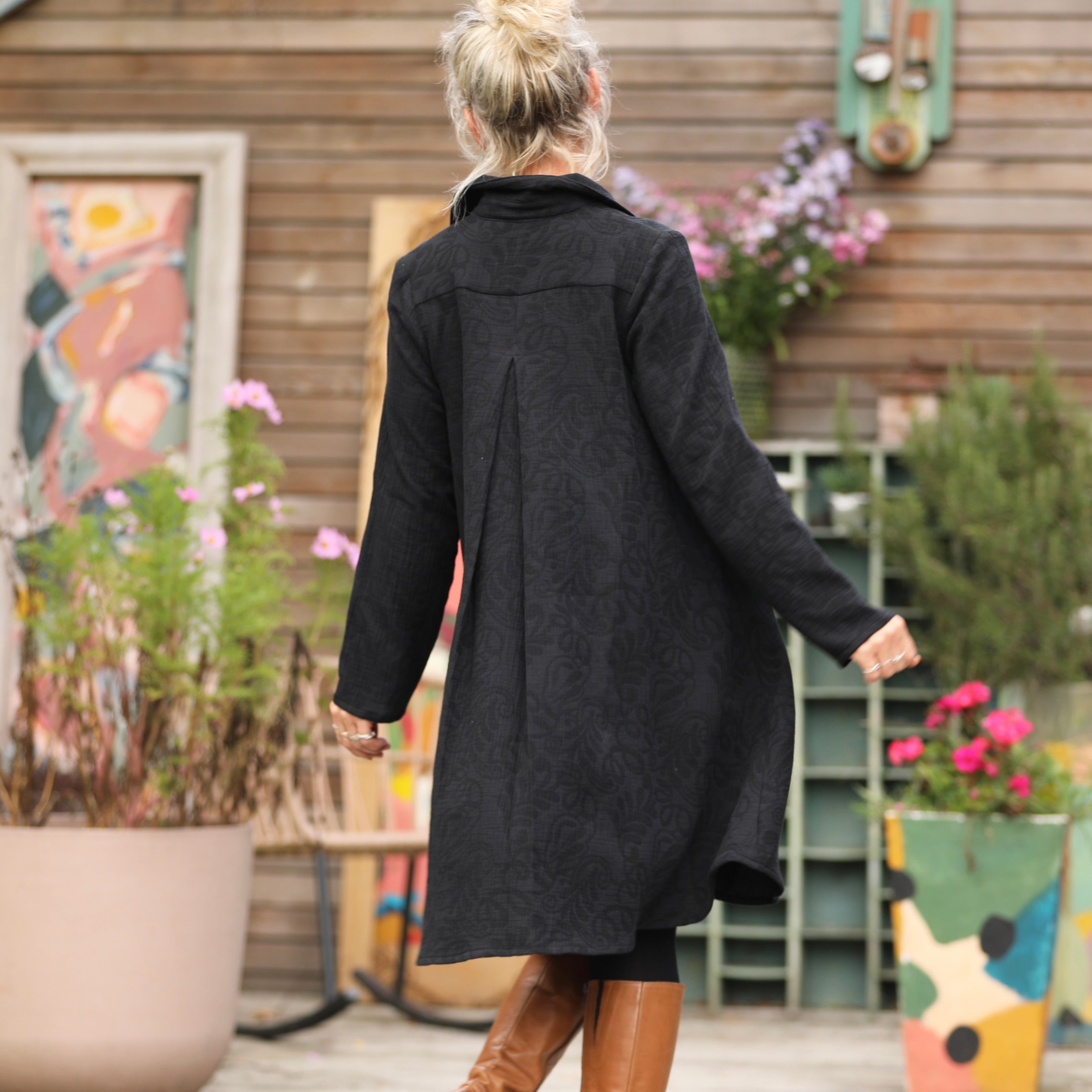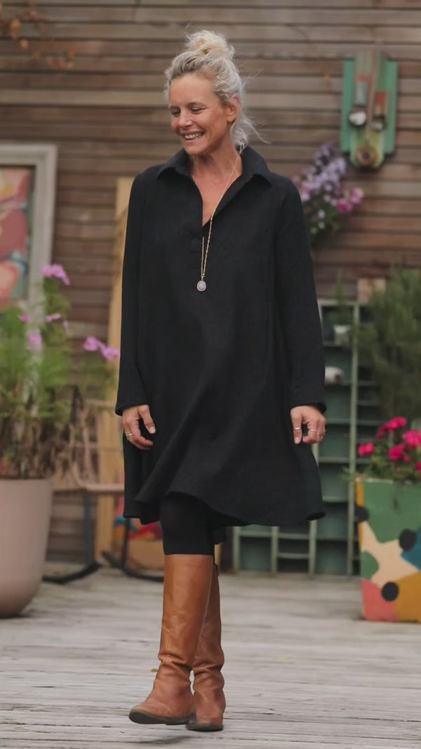 Robe Carole - Jacquard de coton lin noir