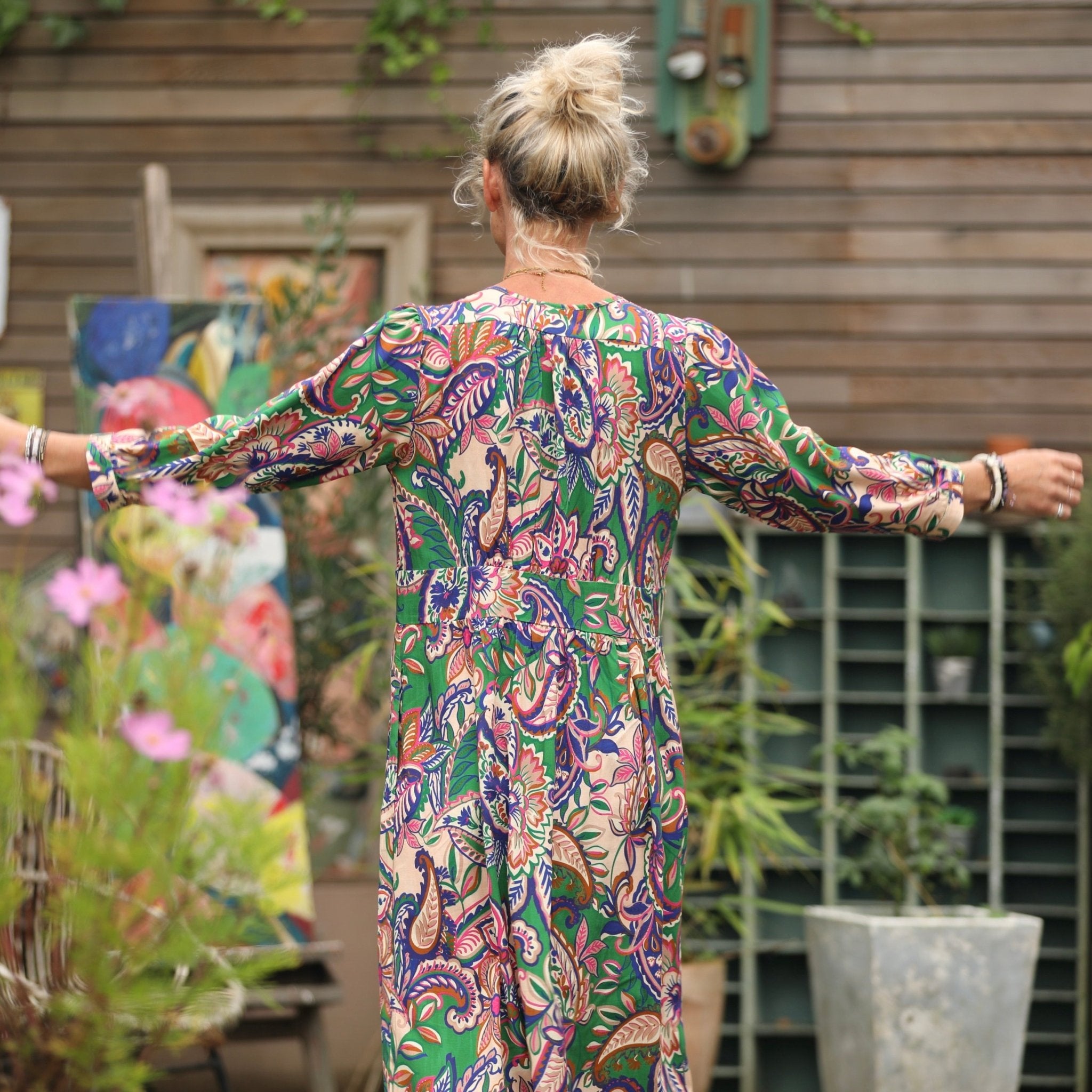 Robe Clara manches 3/4 - viscose fleuri éclatant