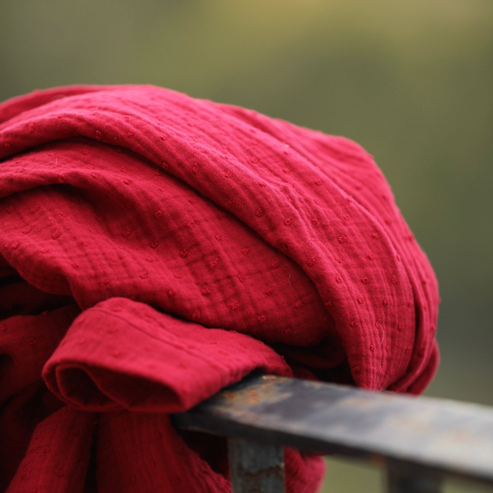 La gaze de coton : lavage à basse température (30°) et un séchage à l’air libre. Elle ne nécessite pas de repassage.