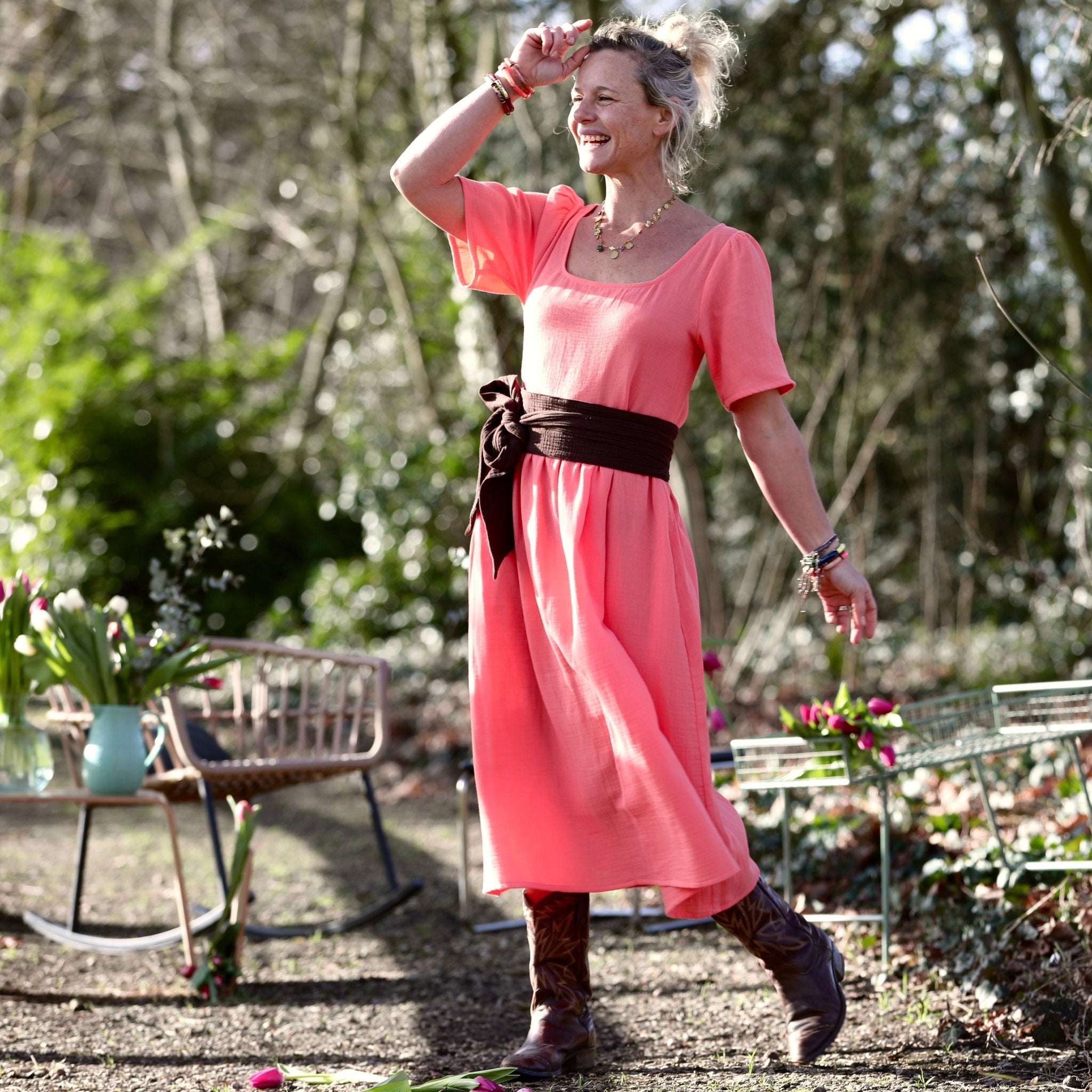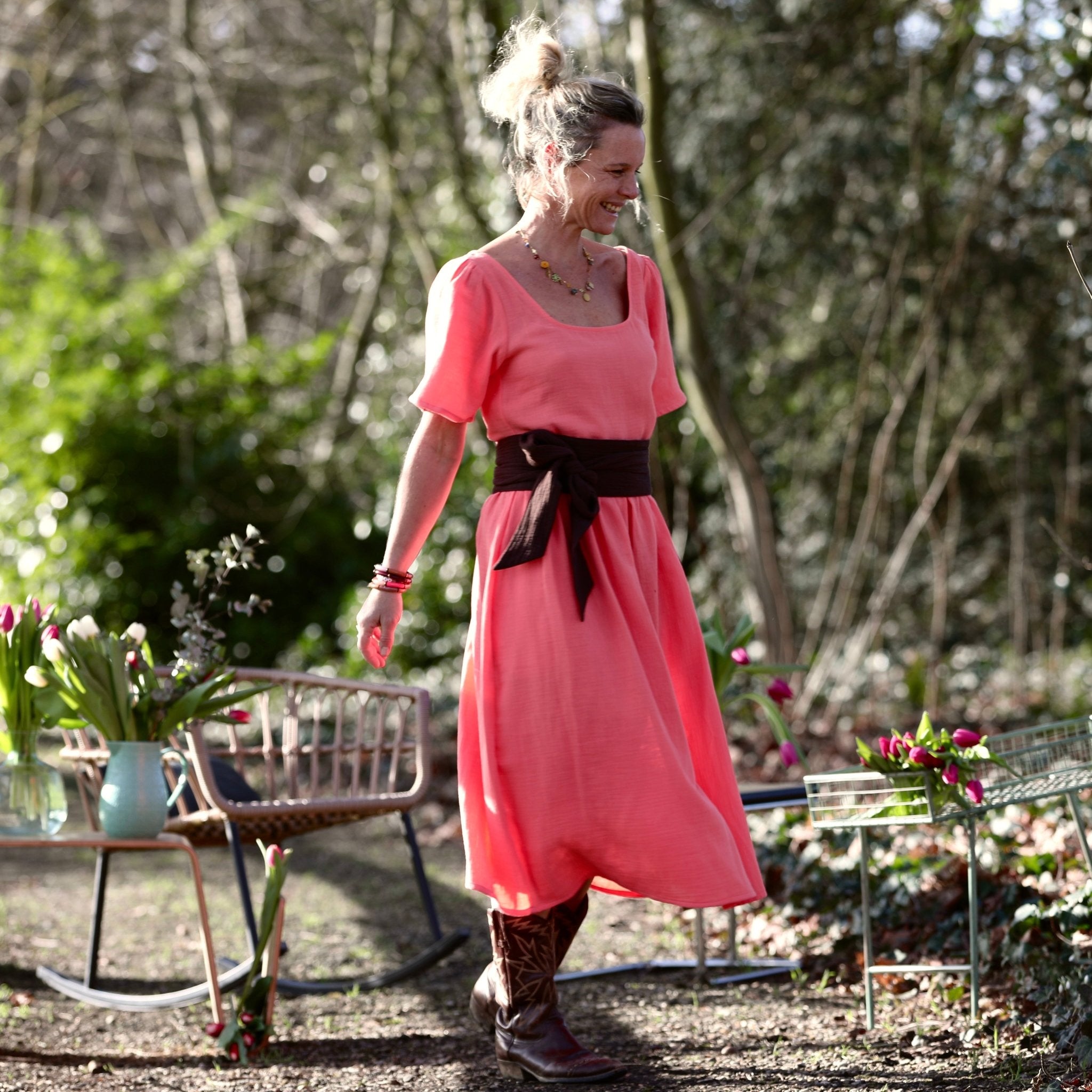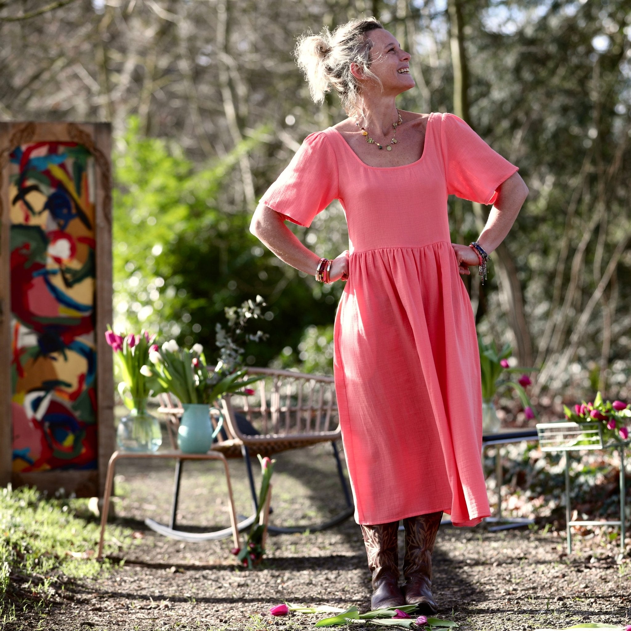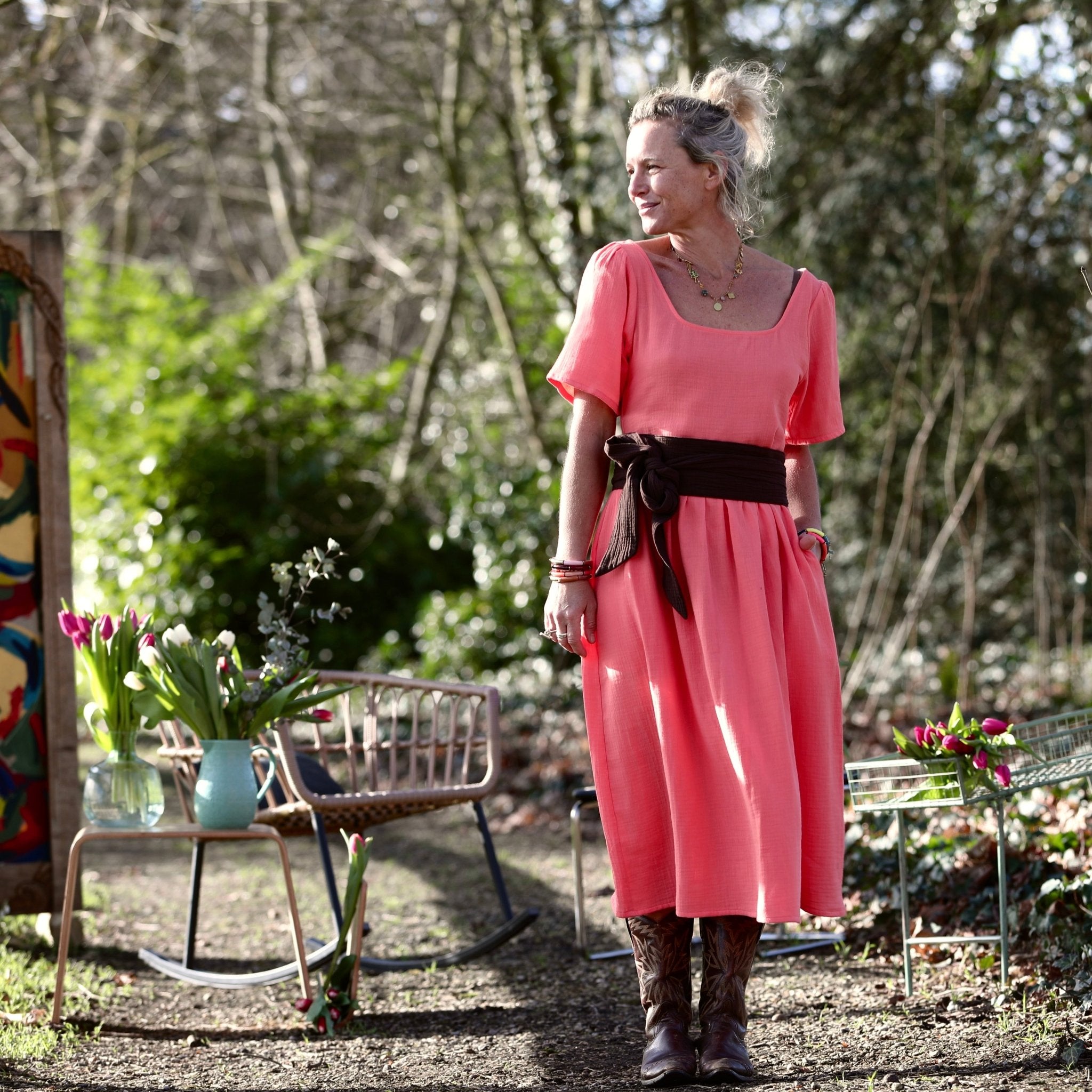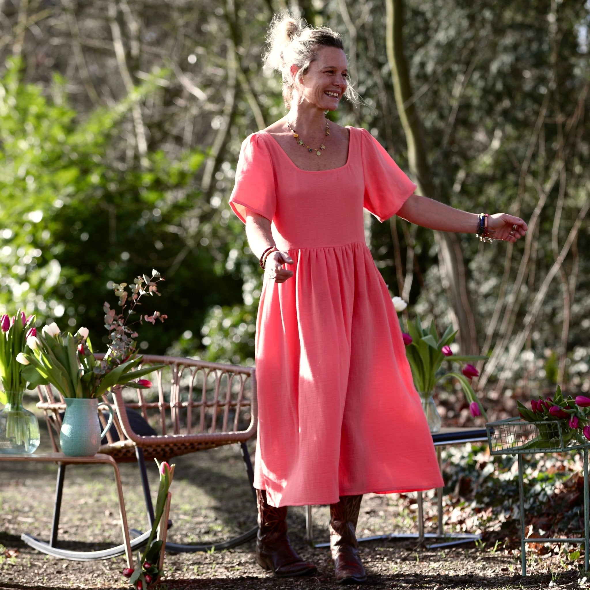 Robe Gwenaëlle - Double gaze de coton pastèque