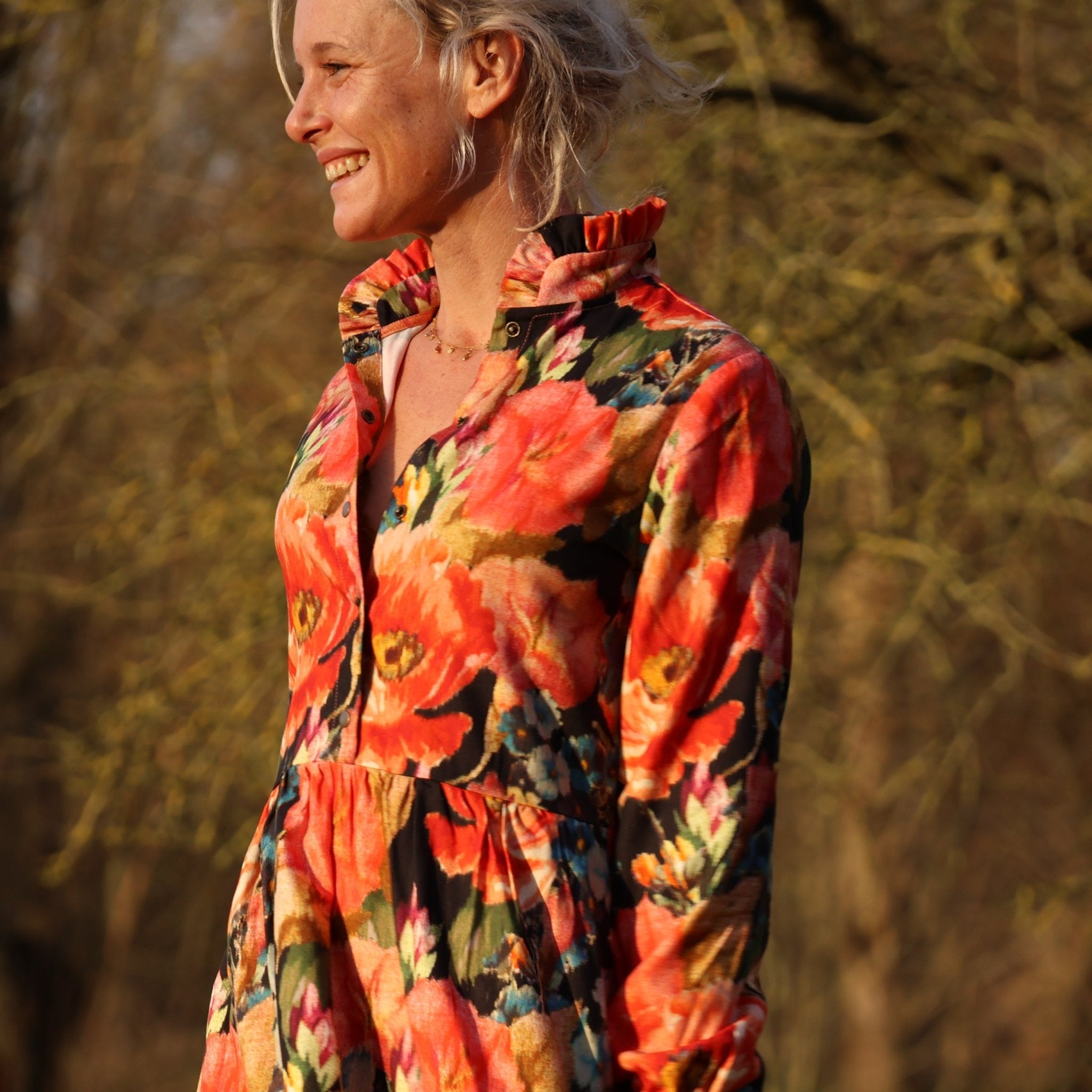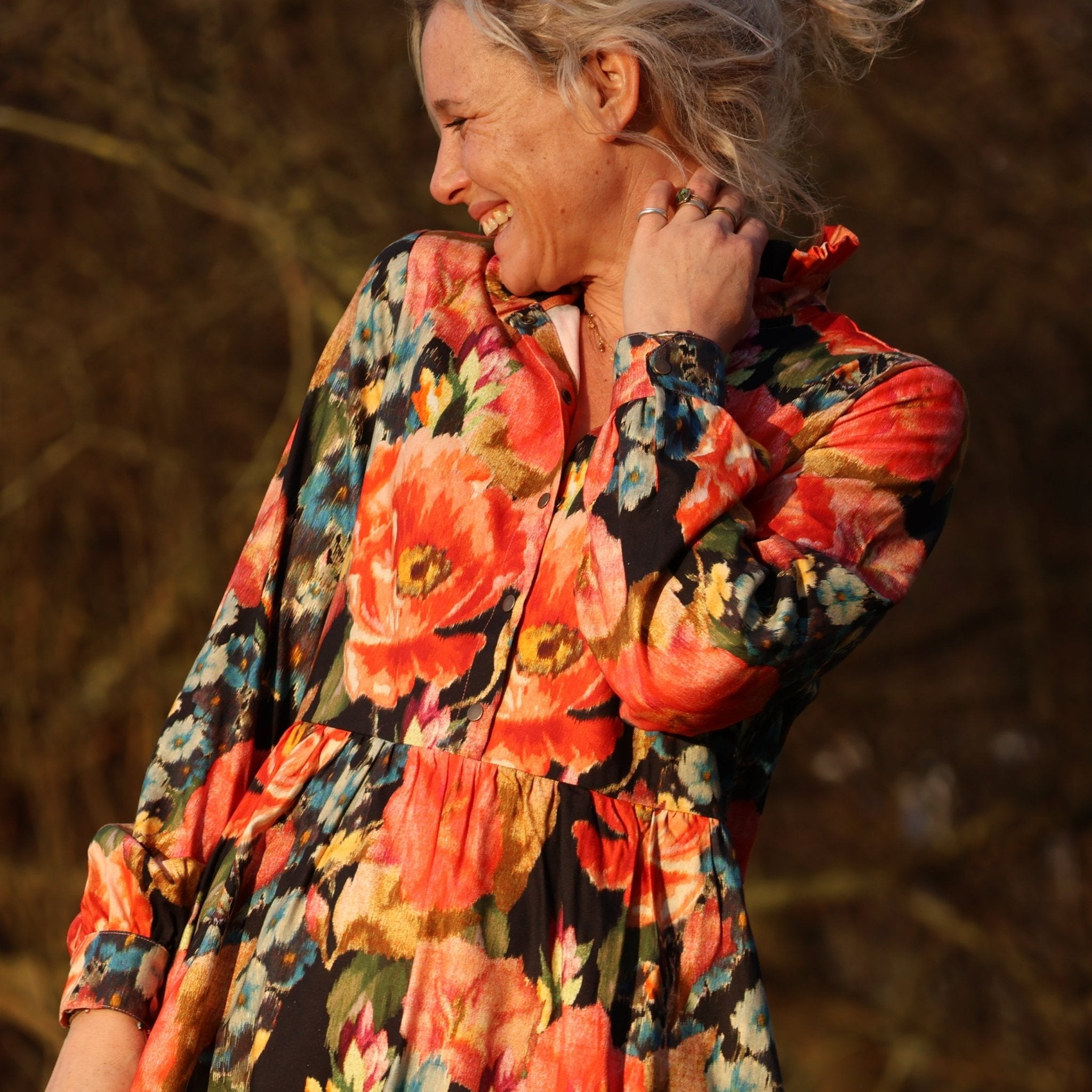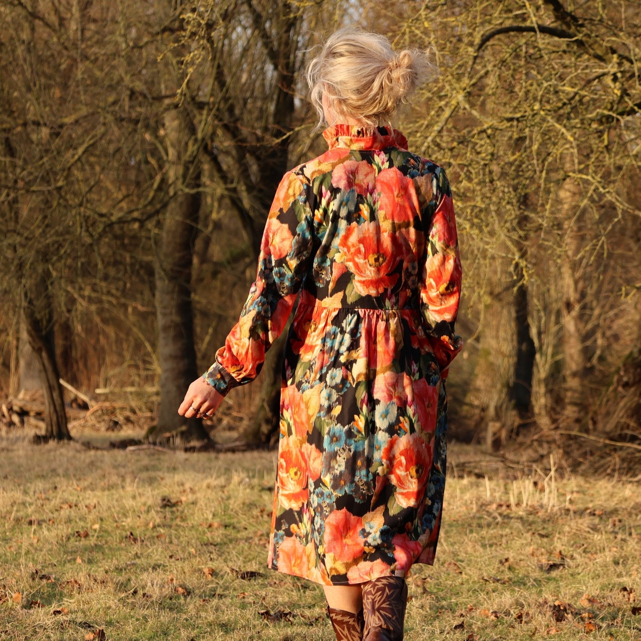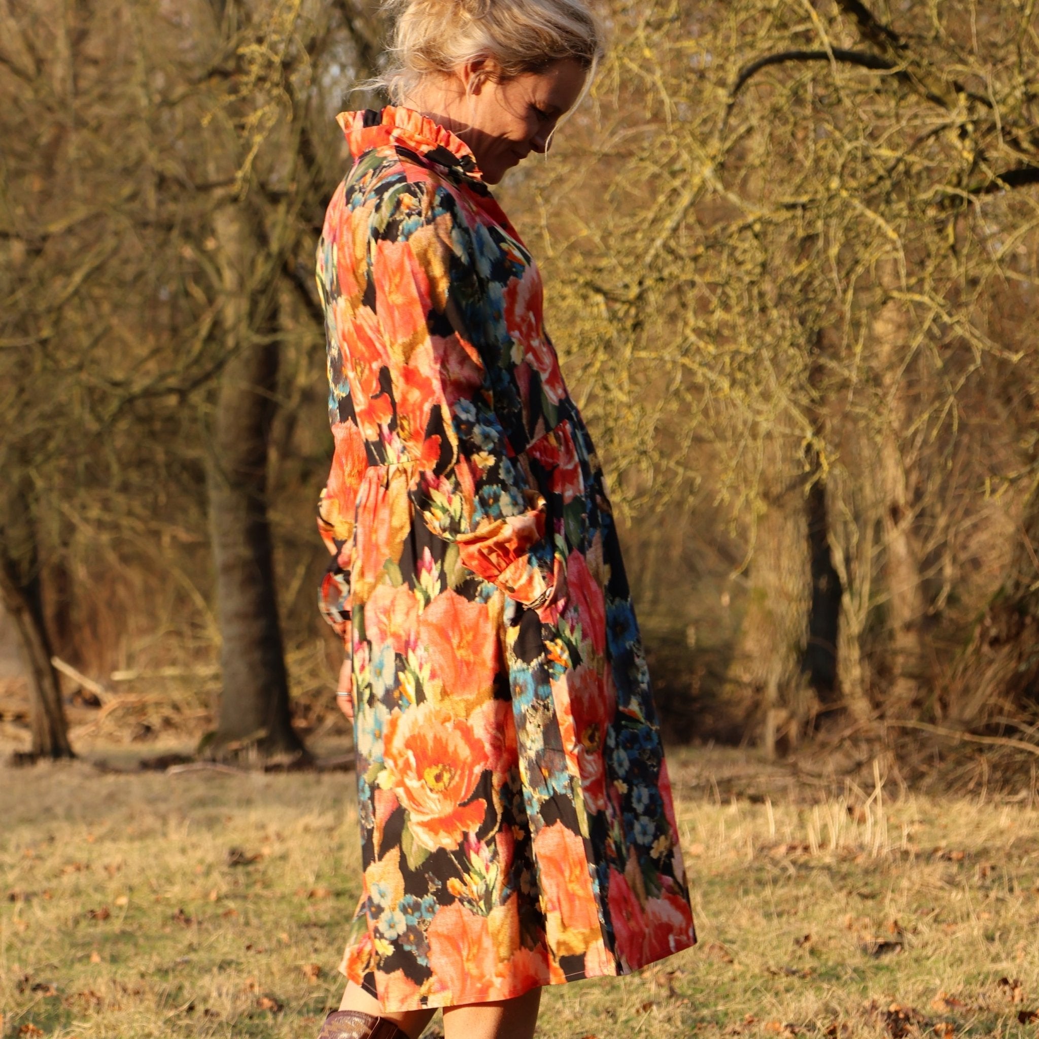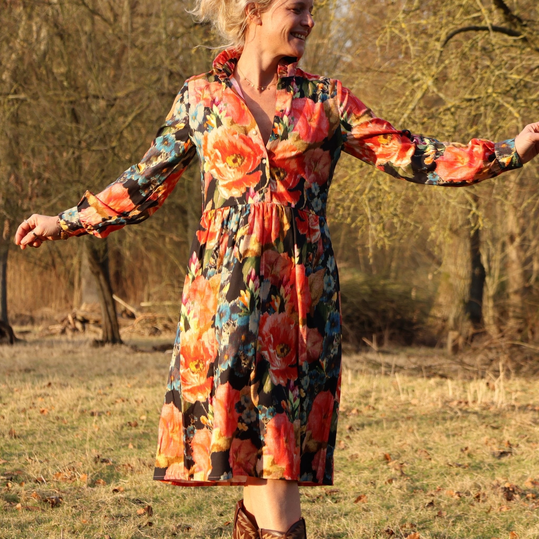 Robe Pomme - longueur midi - sergé de viscose - fleurs de minuit