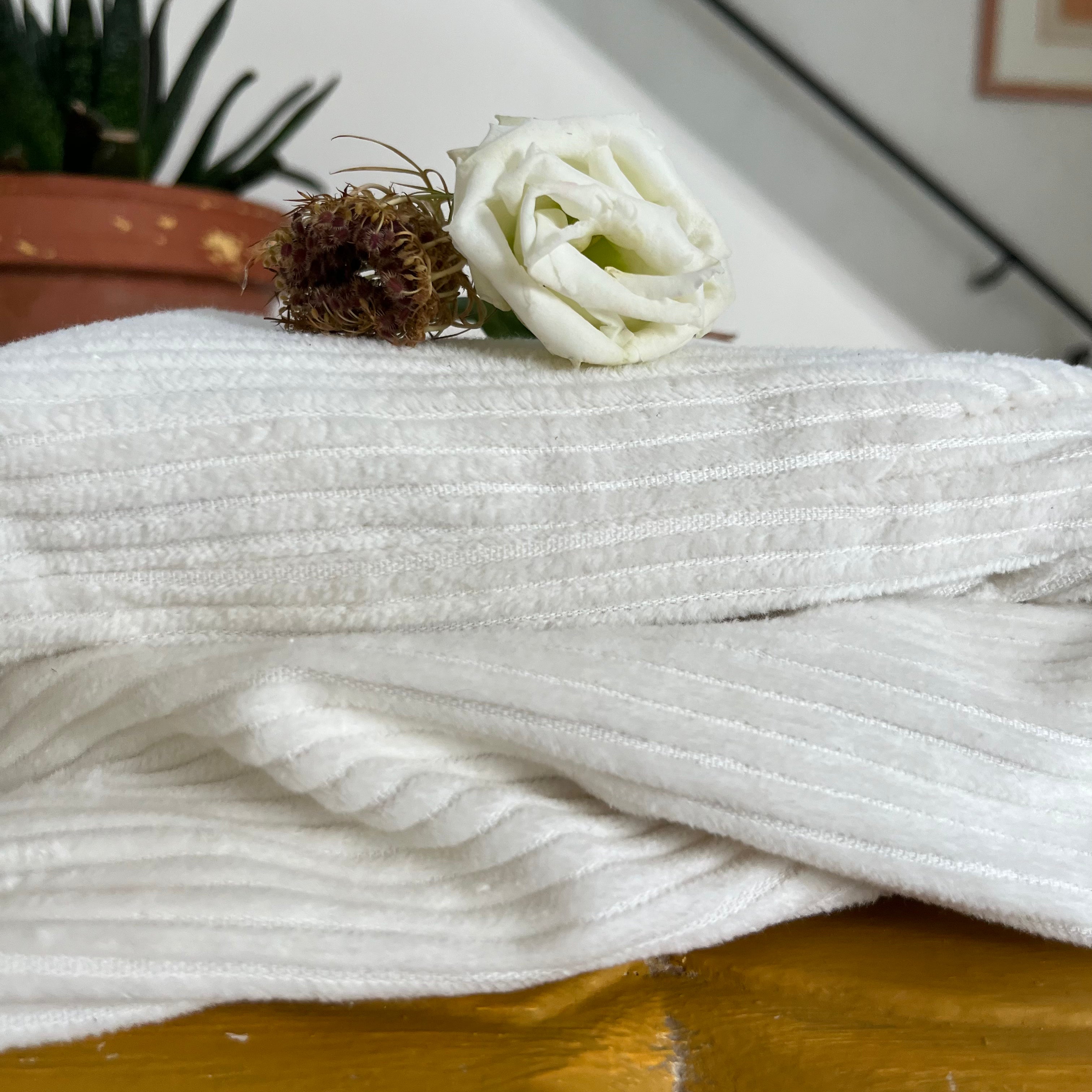 Le lin : lavage à basse température (30°) et un essorage à maximum 600 tours minutes. Sèche très vite à l’air libre.