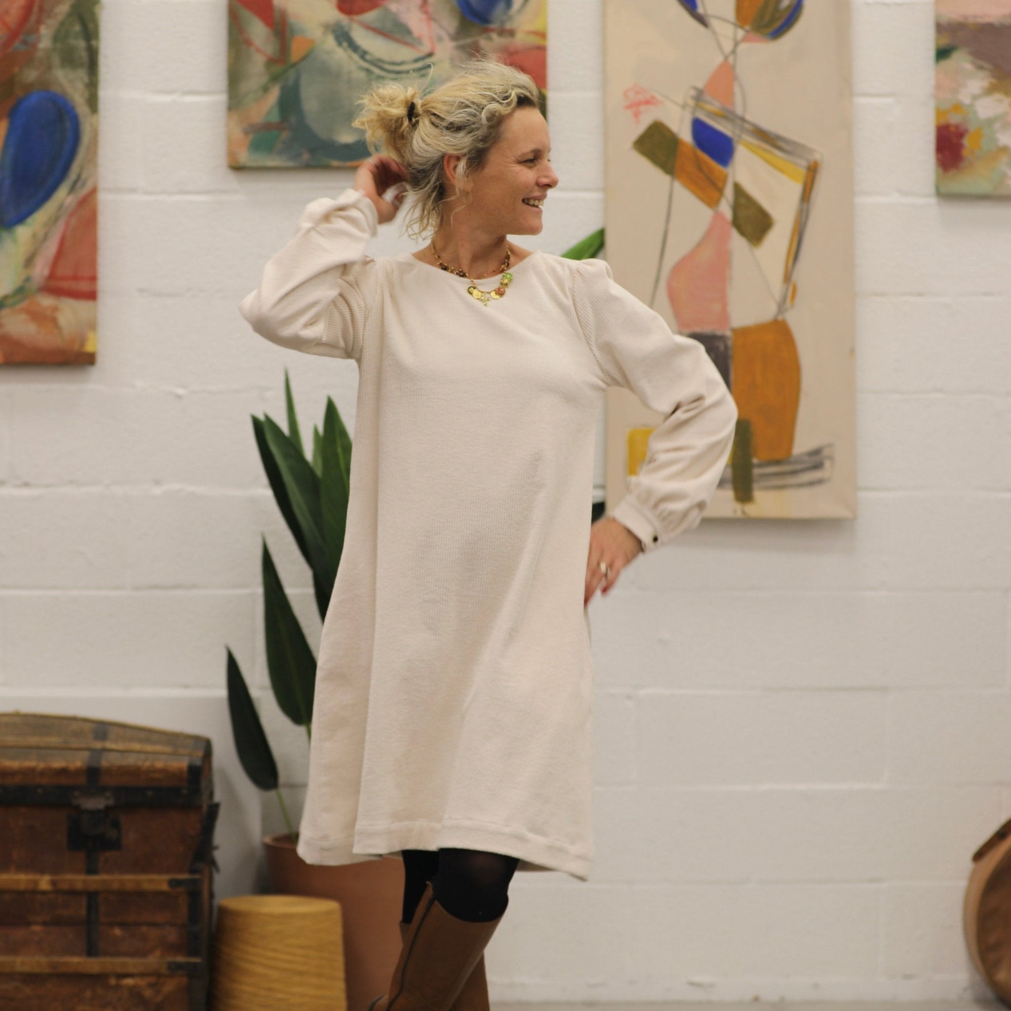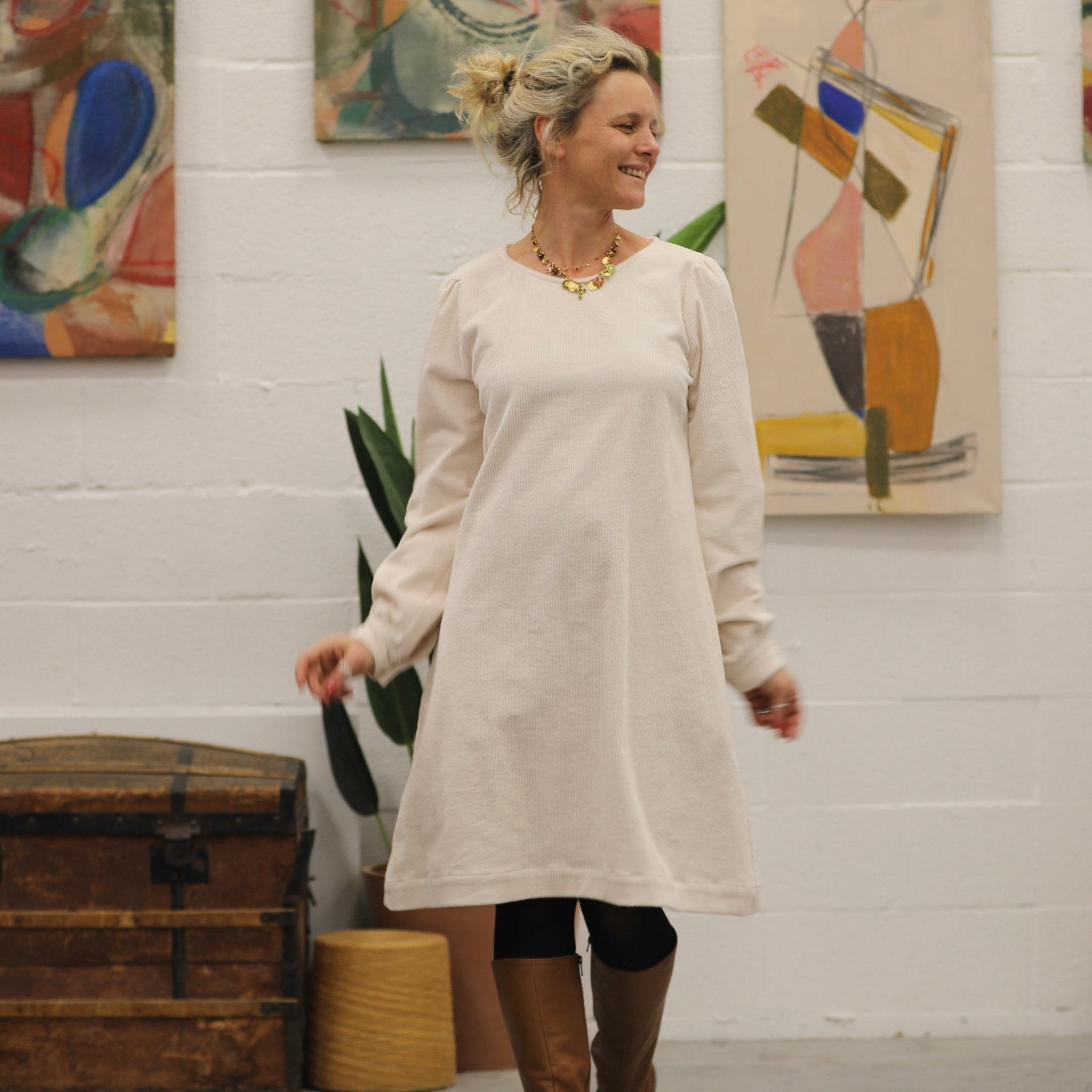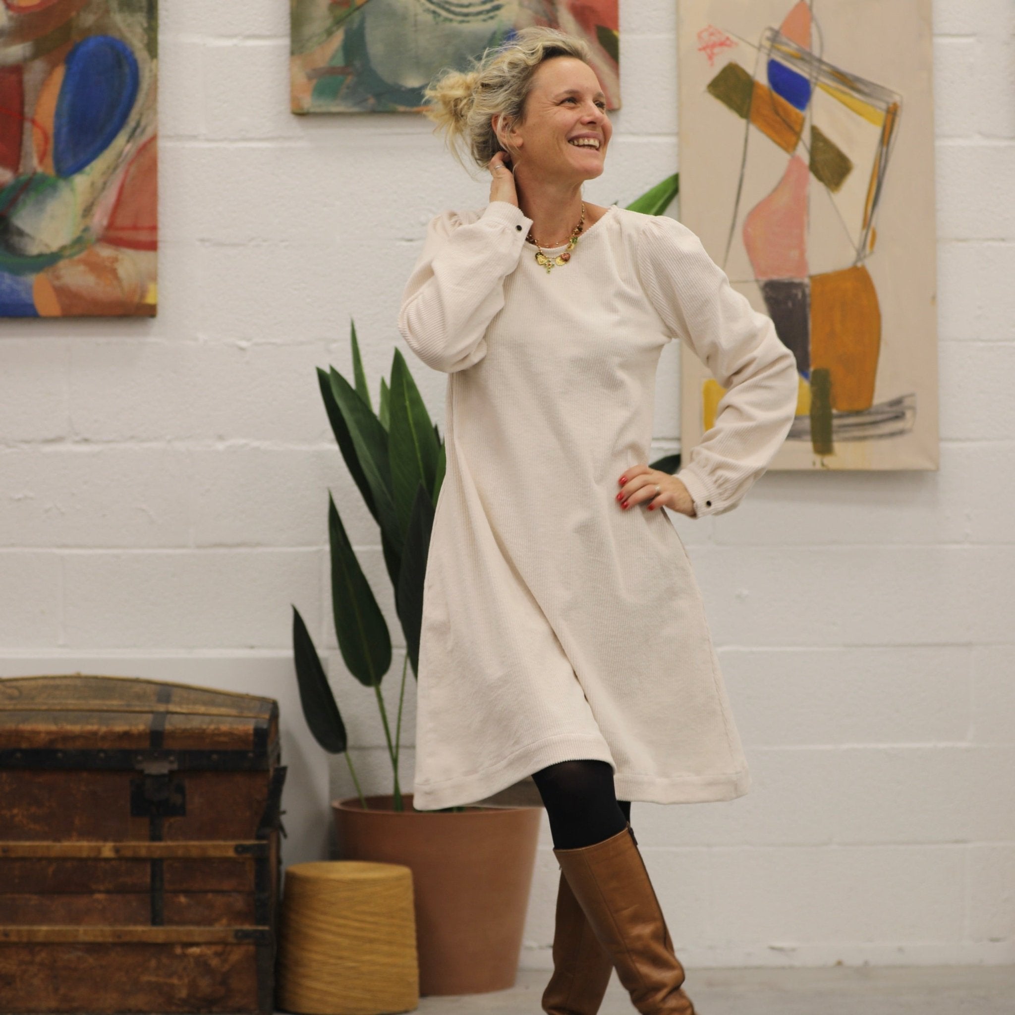 Robe Rosine - velours côtelé ivoire
